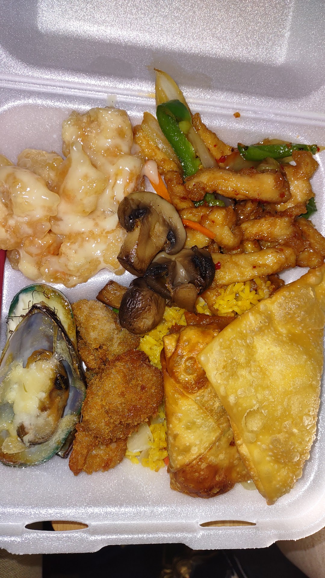 This is probably the best buffet in the Enid area. Restaurant is always clean and has great decor and lighting. Staff are very friendly and attentive; I see them refilling the buffet trays often. Whenever I go it is around dinner time and food is rotating quickly, so the vast majority of what I get is nice and hot (or cold if it is supposed to be and had been sitting on ice). The variety here is also great. I got to try frog legs for the first time and while I will say I probably won't have them again, I absolutely appreciate getting the chance to experiment with new foods. They also do takeout here for a reasonable price, so you can come here after a long day of work and fill a to go box up with your favorite chinese-american guilty favorites (complete with an ice cream cup of course). If I had to recommend any of the dishes here I'd say it's the jalapeño shrimp, the prawns, and the sesame balls for dessert. I haven't tried the hibachi yet, but I can say that the sushi is also quite good, good variety, the chef is preparing them constantly and they put protective plastic wrap over the fresh pieces so they aren't just sitting out in the open. Overall I'd say I'd recommend but definitely stop by during the popular meal hours to get the food while...