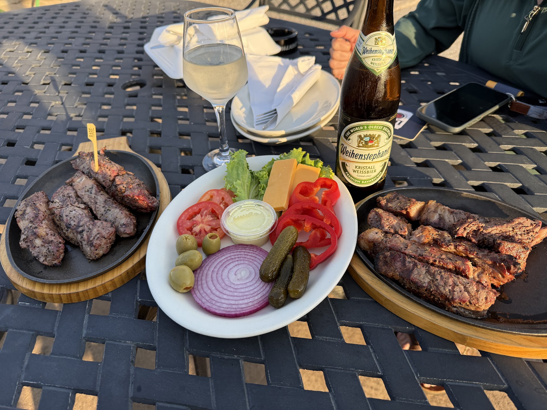 My husband and I had a date night here! It was our first time eating here. We was told under new management and we should check them out. Everyone was friendly. It was actually a customer who told us to seat ourselves. It didnât take long for a waitress to ask us what we would like to drink. Itâs not a big place at all and they were very busy on a Saturday night. There was a live band called Backstage Pass also playing outside. We ordered the steak fingers & veggie plate. The steak fingers was delicious! The veggie tray was yummy too. We ate everything! There was no to go plates for us lol. The atmosphere was great. No one was smoking inside the restaurant. The only con was these dang flies! Since the door to the patio was up for the band, flies was trying to grub too. We just put paper towels over the food to keep them off. All in all we will definitely be back. I will also recommend to...