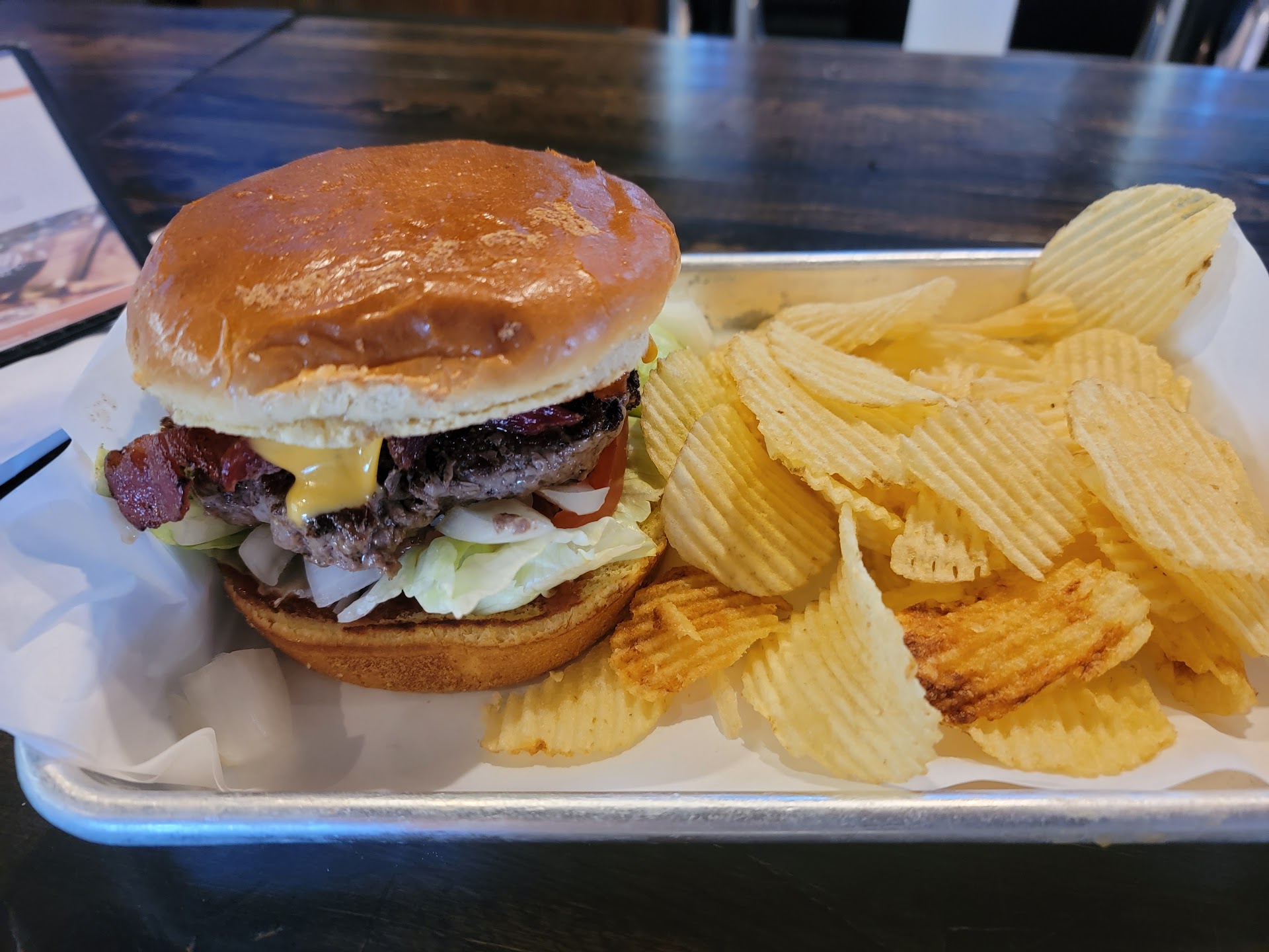Read moreMy boyfriend and I ate here for Valentine’s Day, we are from out of town here visiting my family and we were excited to go here. He has gone to many brew co’s before that have been great so he was looking forward to this one. We missed out on the steak dinner that they had so we both ordered the February French dip sliders, and he got one of the beers. I have never had a French dip that was chopped up nor one that tasted like a sloppy Joe when dipped in the aus ju...and he agreed. The little buns that came on the sliders fell apart before even dipping them in the aus ju, they had the appearance of just cheap or old buns. The menu didn’t say it came with a side but they brought us ruffles to go with them... so over all it was...