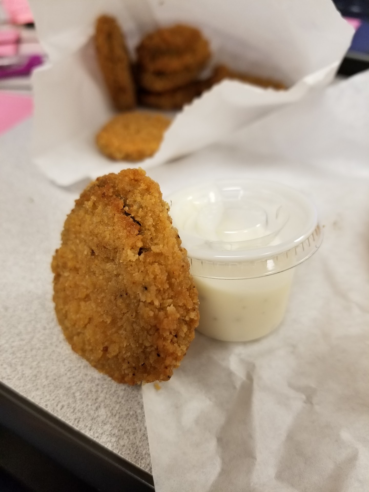 My second visit I had the Inferno burger with cheddar peppers. Again, I was impressed. Just hot enough, very filling for a good price. The cheddar peppers were cheesy and the peppers stayed in the breading (which is frustrating at places like Sonic where the pepper just falls out and you're left with breading and little cheese. ) Everything was fresh and free refills.