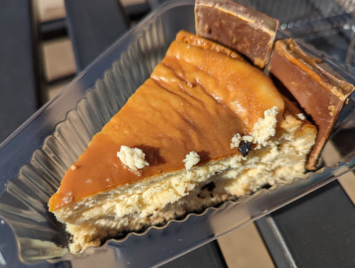 Cases were completely empty with only 3 different cookies to choose from. Brownies, lemon bars and 2 cakes. Chose a slice of red velvet cheesecake for my friends birthday. When she tried it, there was a look of something wrong. I tried a bite. The cake part was very dry and rough on the side. The cheesecake center was not cheesecake tasting at all. It had a really old taste and texture. How long are these cakes kept? At $8.00 per slice it better be fresh. The lady working seemed a bit hassled and at 1:00 Monday afternoon trying to restock? So between the empty cases filled with white paper showing where cookies had been, no pastries or those that tasted like they have been sitting for awhile too long, hassled service and paid $8 for...