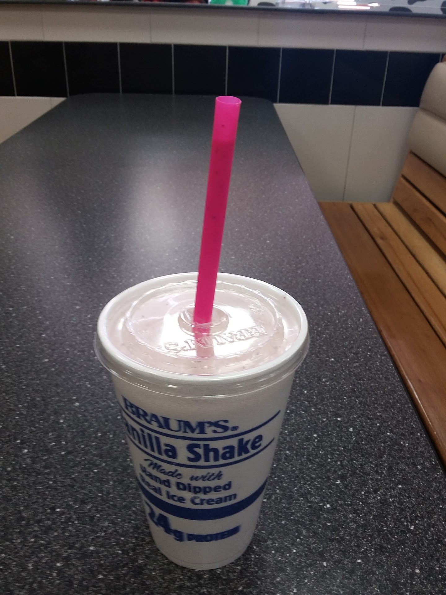 This was my first time at Braum's, and the service was very confusing. I read the menu, which says you have 2 drink options (shake or 22 oz soft drink) and 3 side options (medium fries, cottage cheese, or Greek yogurt). I ordered 3 #7s, each with 2 shakes and one of each side. The trainee rang me up but seemed confused about the sizes and dairy sides. The sizing between what the person offers and what's on the menu is confusing because the menu mentions 22 oz drinks, but the cups are labeled S/M/L. The order wasnât read back to me, but I paid $31.