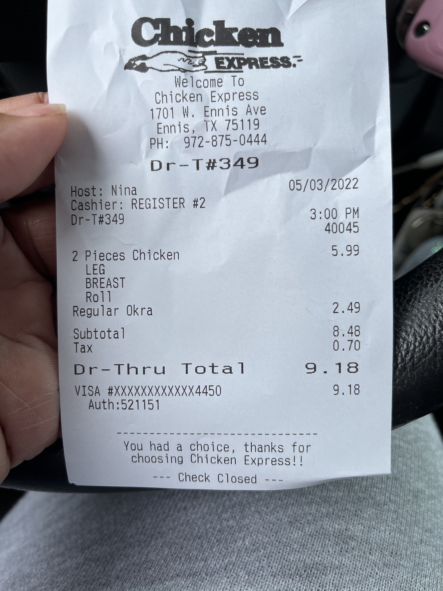 Read moreBought supper in Ennis Tx chicken express today 7-24-25 and got the worst food I have gotten in my last 3 trips here. The chicken gizzards were the worst I have had here. I called my order in and was told it would be 15 minute wait to cook my gizzards. I understand the wait as they were going to cook a fresh batch for me, no problem. Got home and half of the gizzards were tough as leather because I believe they had been sitting under a light all day. They were inedible. My dog even said no. The other half were half edible and half leather. I will have to go to Waxahachie Chicken E from now on because they have never let me down. The store out by Atwoods is great. Not a bad meal ever. Please stop using Ennis Chicken E as they think they can serve inedible food and remain in business. Let's pull together and shut them down or at the least, replace the employees working this shift today. It was 4:45 pm when I picked up. I don't know who owns this franchise but I hope this store closes for and reorganizes their employees and managers. Gizzard lover, not leather with...
