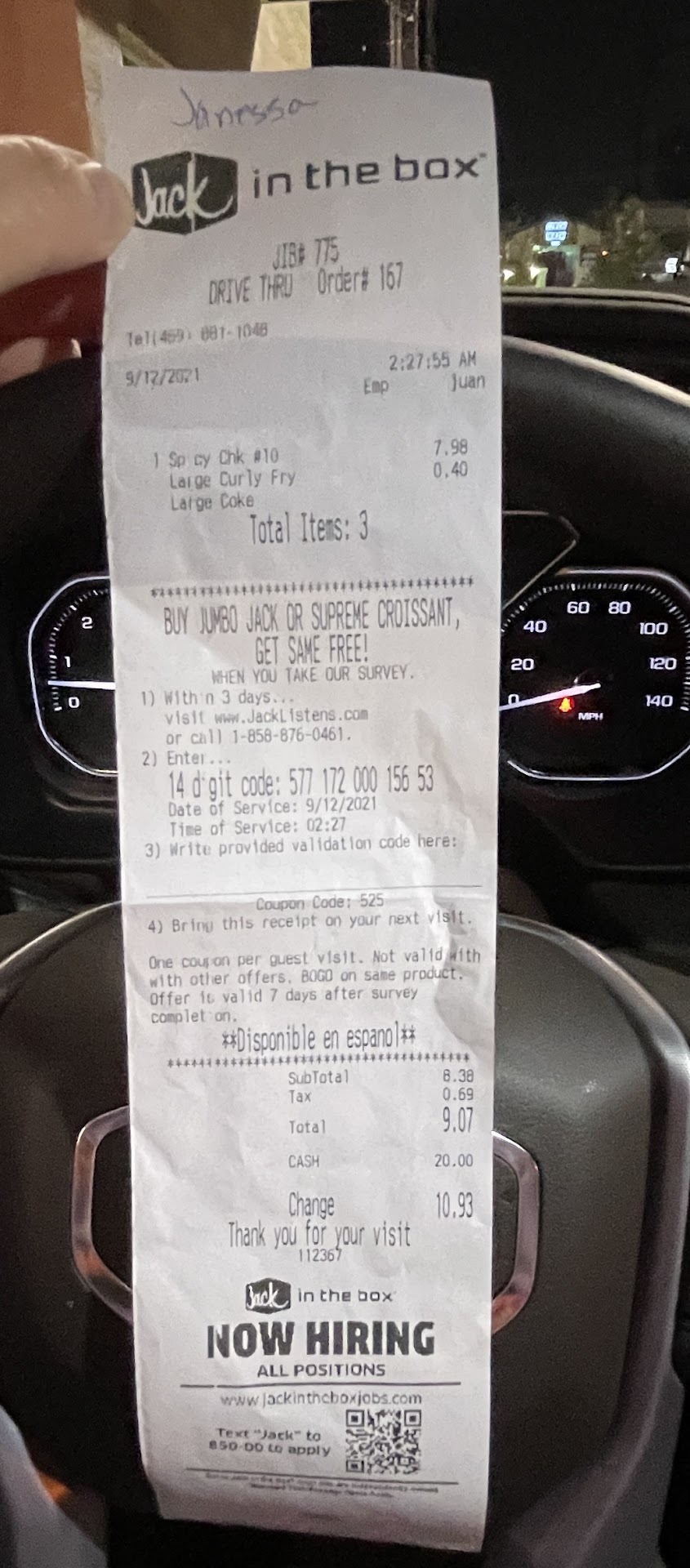 Read moreI don't usually leave bad reviews because I've been in fast food before too and know how it can be sometimes.But today on Thanksgiving I got really annoyed because I work everyday holiday or not and I actively avoid this jack in the box but since it was Thanksgiving it was one of the only places open I could go to. I ordered a spicy chicken sandwich with cheese and 4 tacos and after paying they tell me to pull around to the front and they would come out and give it to me so I did and after 10 min they bring my food and I rush to work when I open the bag I have 2 tacos and a chicken sandwich with no cheese. Usually I would let it slide and not think much of it but this happens at this location every single time I go there and on days I'm running late I can't go back and ask them to fix it and it's just so annoying at this point. I would suggest going to literally any other fast food restaurant in the area because this jack in the box is almost always going to get your...