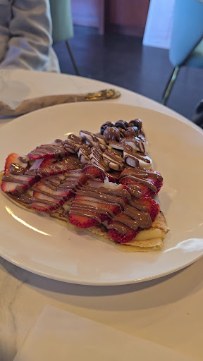 Read moreWe stopped in for a snack for my kids, having no idea what to expect. I was thinking it's a coffee shop and we'll grab a muffin or something. I was surprised by the waffle and crepe menu. My daughter was thrilled lol. She got the strawberries and cream waffle, made some changes to it which they accommodated with no issue.. they even brought out melted butter for her and poured it over her waffle because she said she likes that. I got a waffle stick for my son. I wasn't sure how to order them, and the lady was very patient in explaining. We ended up getting it with chocolate chips and dark chocolate with maple syrup added. Both of my kids said their food was "amazing" they ate every bite. It was also very pretty... Which of course isn't a requirement, but they were impressed with how fancy it seemed for what we thought was just a little coffee shop. My daughter loved the "gold forks" and the food was presented so well. It was approximately $10 per person, depending on your...