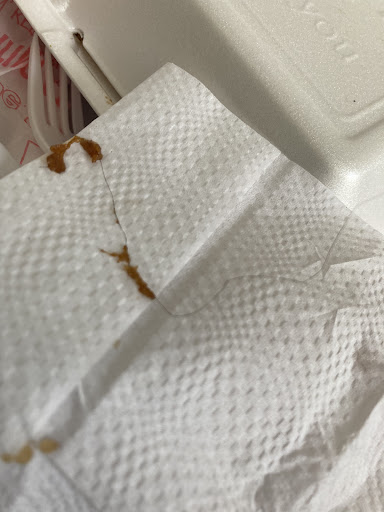 It was also at least 85 degrees in the dining area and some employees were on their break out there, kinda staring at us and coughing on the back of my partner's head while we were trying to eat, which didn't help their...