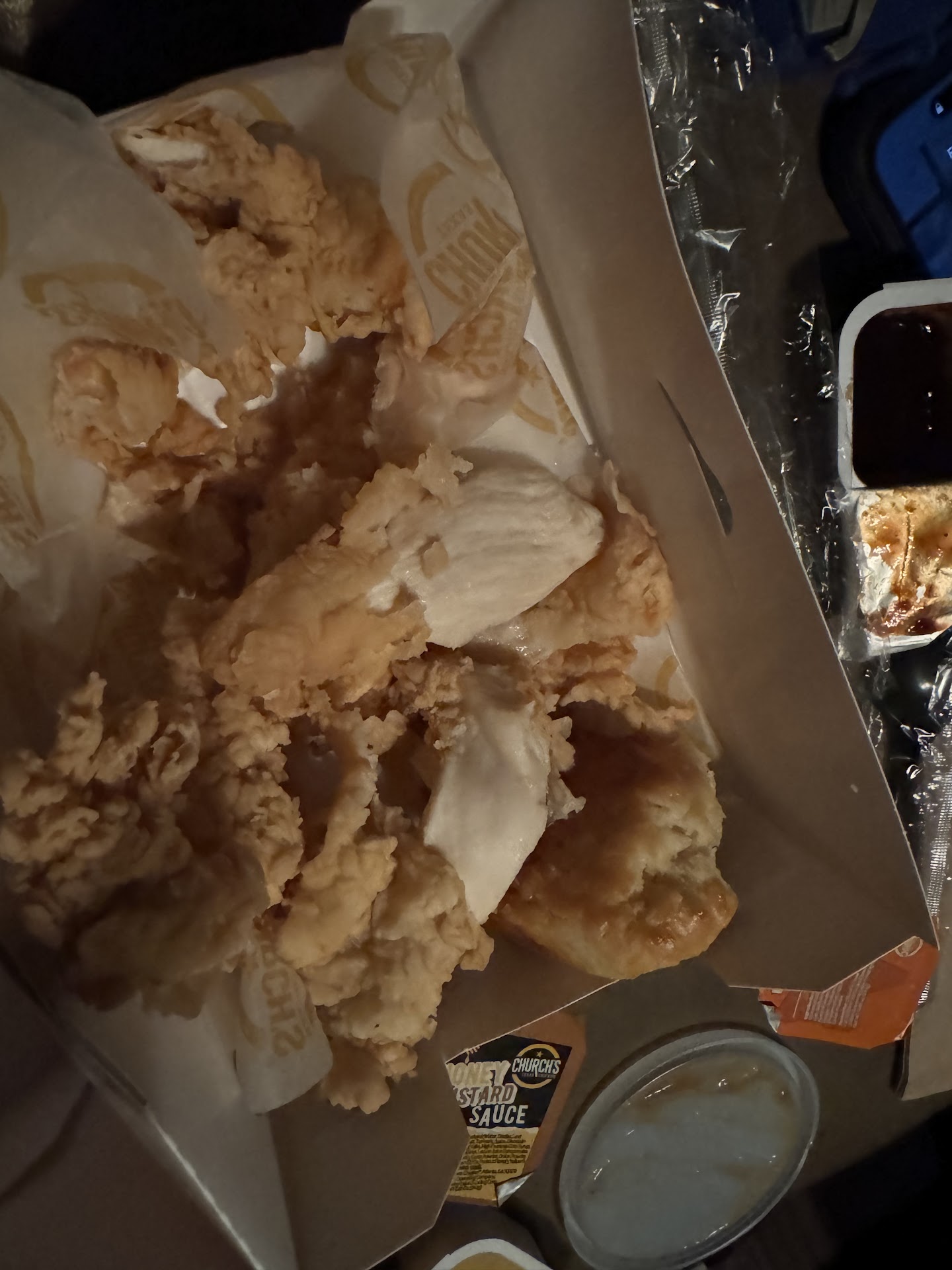 I ordered the four piece combo mixed and was told that they didn't have any white meat after already paying and waiting for about 8 minutes at the window so, I had to settle for dark pieces only. They did offer to replace the non-existent white meat initially ordered with chicken tenders but obviously, that's not the same thing. I also ordered the fries because I don't ever recall tasting churches fries (I haven't been in over 15 years) but, they didn't have them available either so, I opted for okra instead. The food I did get was good but I'm starting to see a trend where many restaurants I visited between Enterprise and Dothan just don't have basic menu item staples. Almost like they don't align their restock orders according to sale projections. It's pretty disappointing. I don't ask for much but, I would think a free menu item or a discount for the inconvenience would be offered. I didn't ask so, no complaints but, to me, that's basic customer service. Here and now is not the best forum to discuss that but, It's pretty disappointed to see...