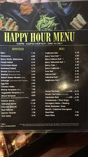 Their sushi and bake mussels are okay. I was disappointed tonight because I told the chef that I didn't want "all you can eat sushi" for $30 (after tax) because I get full fast but he talked me into getting it then tell me they doing "last call" in 5 mins after he charged me for all you can eat, well what was the point of offering it to me. Im currently here now, the place close at 10:30 but told me they're doing last call at 9:30 and I arrived there at 9:20pm. I feel cheated. Should of told me they were doing last call soon before he offered me "all you can eat"..... Oh and on Yelp they have their hours for closing at 10:30pm(finding this out last min because I ask) but they said they close at 10:00pm and they don't have time to change their hours on Yelp. I don't know if it's just Sunday's or everyday but seem like they were rushing to go, I had to ask the waiter for water, he didn't come back and check on me and I had to get up and order through the chef because the waiter didn't come. I had to keep calling on the waiter for soy sauce, water, wasabi, a bag, to go box, straw. They didn't even want me to take my last roll home after they tricked me to pay $30 knowing I only have 5 mins to order. I won't be back even though I've came here before...