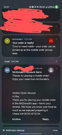 Contacted customer service. They said they let the location know. So no big help there. No McDonald's now. Will update if I'm actually contacted...