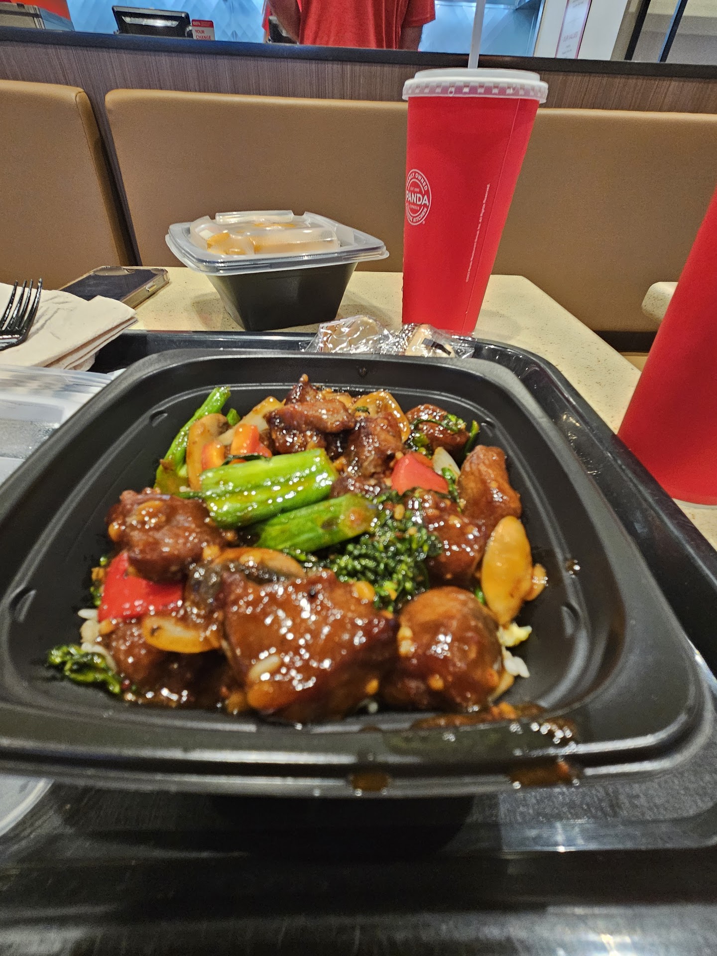 Read moreFirst time eating at Panda Express. I ordered online and the pickup time was 8:30. I arrived at 8:35. I called about my order because the doors were locked. The guy on the phone told me to go through the drive-thru. The lady told me we were out of white rice and do you want fried rice instead. I told her fried rice is fine. 20 min later a different lady came over and asked what the order was. I told her. She said thereâs no white rice. She came off as rude. My bf told her our food was supposed to be ready by 8:30. She said, âSo what do you wanna do?.â Iâm just thinking: Uhm, I already paid so you better give me my food. Unless you are going give me my money back. My bf told her weâll have fried rice. She told me to park at the front and weâll give you your order when itâs ready. 10 min later, we got finally got our food. I ordered grilled teriyaki chicken and it didnât have teriyaki sauce on it. I even put utensils, napkins, teriyaki sauce, sweet and sour sauce, and soy sauce for the additional requests. The only ones we got were the utensils and soy sauce. Bad experience for my first time eating at Panda Express. I wonât be eating at this Panda...