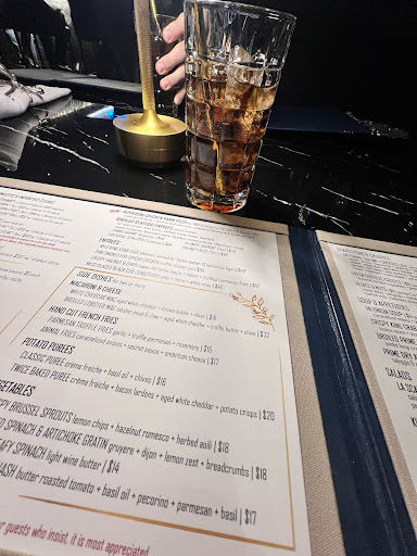 Read moreFrom the moment we walked in, it was evident that this was going to be more than a meal, it was an event. The restaurant has a dark and elegant vibe of an intimate supper club, and our corner booth gave us a view of the entire space but also felt intimate for our party of four. The service was beyond incredible (many thanks to Dewayne and Milan!). Their thoughtful recommendations and menu knowledge were amazing, and we wanted for nothing all evening. We started with delicious cocktails that were inspired by astrological signs and enjoyed a lovely bread (olive tapenade this night) and cruditĂ© course (oh, that green goddess dressing). The crab cake starter was a master class in how to update a classic and our family style side dishes were all wonderful. But the star of the show was (of course) the steak. After Dewayne walked us through the different choices, I selected a Wagyu-crossbreed that didnât disappoint. The steak was so tender and packed with flavor that the bearnaise sauce I selected sat untouched after my first bite. Full and satisfied we were ready to skip dessert but were coaxed into trying the Sticky Toffee Pudding with brown butter ice cream. All I can say is YUM! This was the perfect ending to a perfect meal. This hidden gem of a restaurant is so special. From their incredible steaks and extensive seafood offerings (that we have yet to delve into) to their impeccable service and overall ambiance, this is a place you should experience. I know we will be going back...