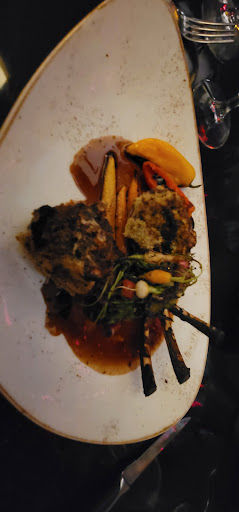 The micro vegetables sounded like a good match with rich lamb but you could tell that they were for decoration and nothing else because besides the one 2-inch long carrot they were practically raw with burned whole stems and leaves. I don't understand how they could mess up cooking root vegetables the size of marbles. I love root vegetables and enjoy many 9f them raw but partly cooked with burned foliage was off-putting.