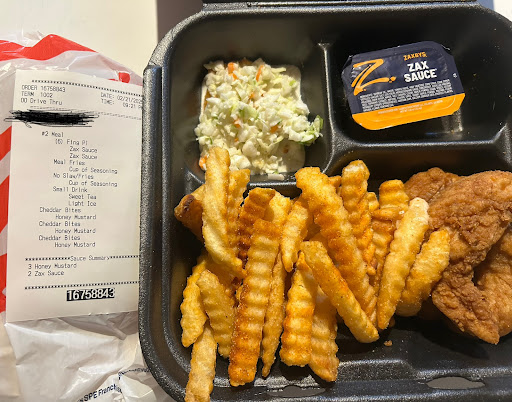 We're passed by CHIK-FIL-A to go to ZAXBY'S. What a mistake! You can judge for yourself.