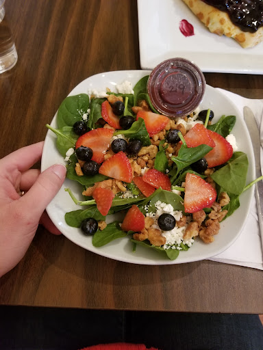 I'm really surprised there are so many positive reviews when another AMAZING creperie nearby with two locations is available with more reasonable dimensions, prices, and serving sizes. I tried to take a picture of the entryway with tables that can both block the door as well...