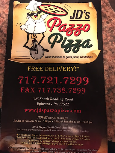 Read moreJust a heads up: when you order from JDs Pazzo Pizza. Check your food before you pay... because when they mess up your order they will blame you. The cook will refuse to remake it because the person taking the order doesn't understand only cheese and lettuce means ONLY cheese and lettuce apparently it means mayonnaise (which my kid is allergic to) also. Conveniently the manager won't be in to talk and it will take them 3 min to figure that out. They offer to remake your order if you pay again and tell you to call the manager tomorrow. Very disappointing customer service as we like ordering from them their food is always good. updated my rating ownership reached out to me to satisfactorily fix the situation. Robin was kind and after her explanation I realize it must have been an off night for employee's due to specific situations. We've never had a problem before, food has always been great. As was the food my son could eat this time. We will give it another try...
