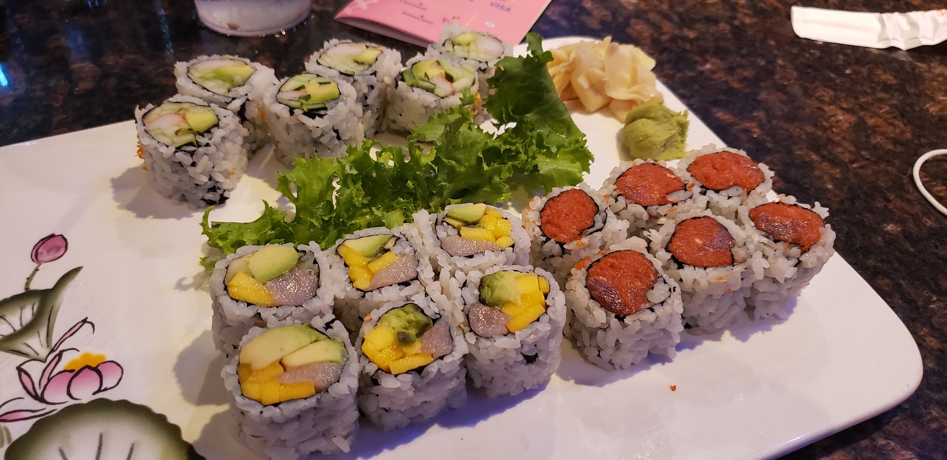 For service, know if you go in or call to order take out, the cost is significantly less than ordering online. Went for a large family gathering this weekend for hibachi, there were 9 of us, 4 ordered hibachi, 5 wanted sushi or kitchen meals. Apparently half of your party needs to order hibachi to sit at the table which of course we found out after we were all sat with drinks and settled in. Since they don't even have a table that would sit 9 and I wasn't going to have my grandmother get up holding her drink waiting for a table, I changed my order from sushi to hibachi which was just average. Jokes on them because it cost me $12 less than my sushi order.