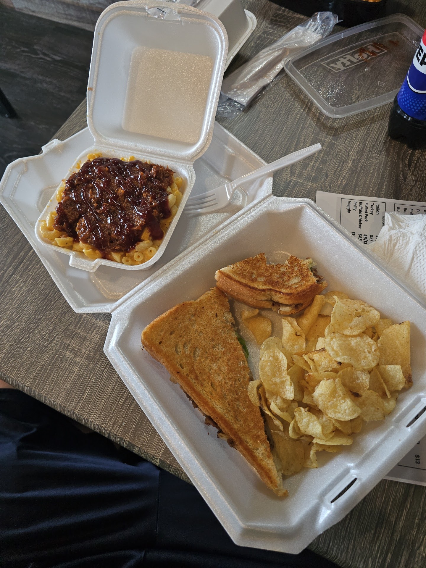 The food they recommended was the Mac and cheese with pulled pork bbq, which was delicious and hearty with not only a large portion for a small price, but it comes with dishwasher and microwave safe containers.
