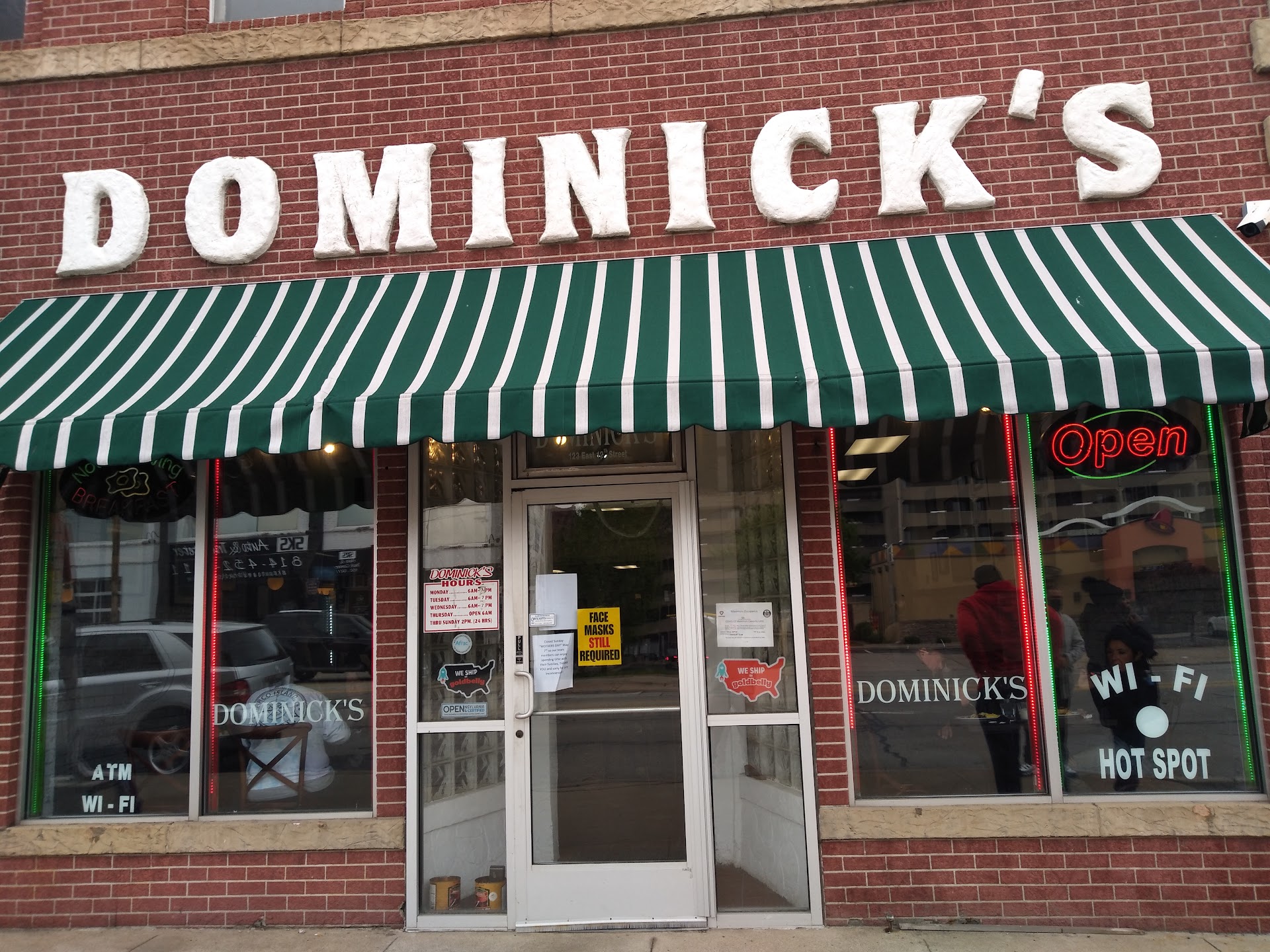 I saw people in the back of the dining room had a pizza box. I decided to give Dominick's pizza a try, and ordered a large pizza to go. A peace offering for the wife after being out drinking beers at Lavery's. When I got home and opened the box there was at least a 2 1/2" to 3" gap all the way around the crust with no sauce or cheese. It looked ridiculously naked, and I believe I paid over $12.99 for this. In all of my years of eating pizza in Erie (which I do love the locals) I have never seen a place purposely avoid putting sauce and cheese so far from the edge of the crust. The pizza itself was a little under-baked as well, which I can forgive, but the shortage of sauce and cheese was bad. The good news it should be an easy fix for Dominick's. Cover the pizza better.