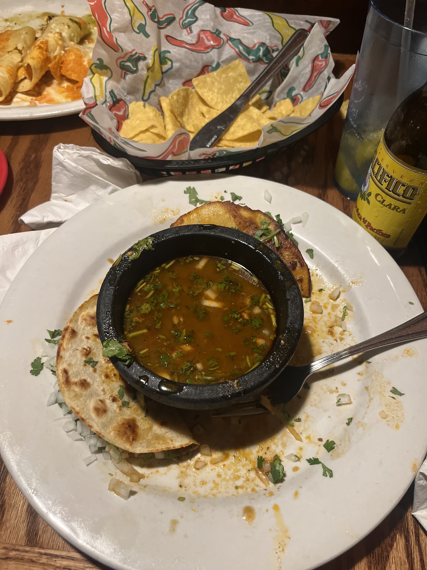 I had horchatta which was not horchatta it was milk with vanilla in it. We also had Margaritas and sodas. Thank God for the margarita, it was this restaurants only saving grace.