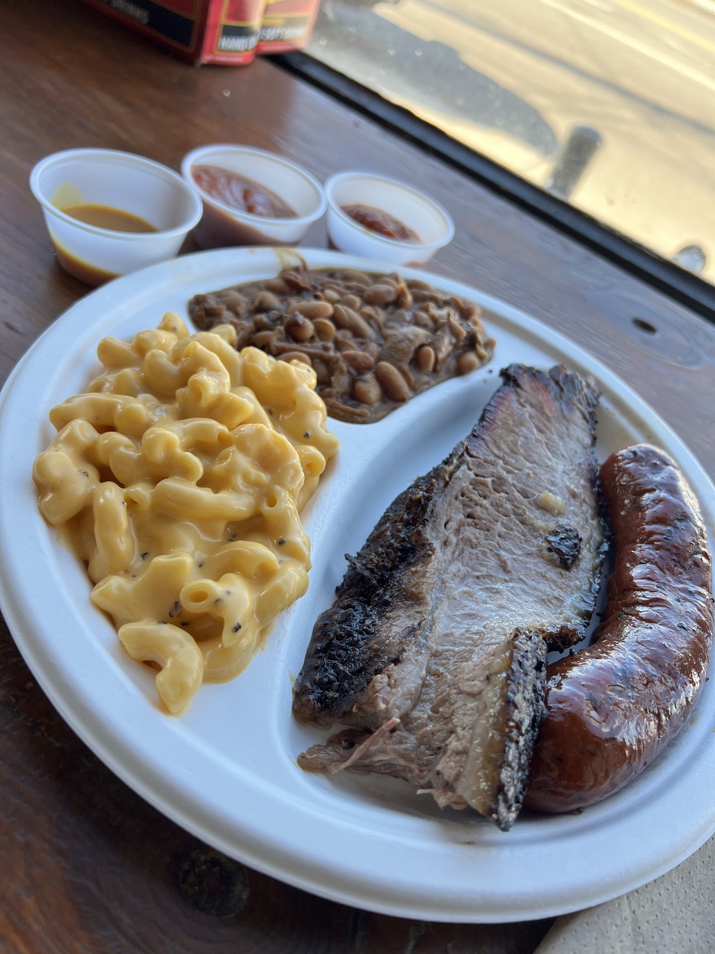 The sides, though? Oh, the sides. That macaroni and cheese? Creamy and dreamy. The pinto beans with chunks of brisket? Smoky, savory, and probably better than your grandmaās. The wife reported the potato salad was creamy and delicious as well. You could easily order them all, but thereās only so much happiness one person can handle in a single meal.