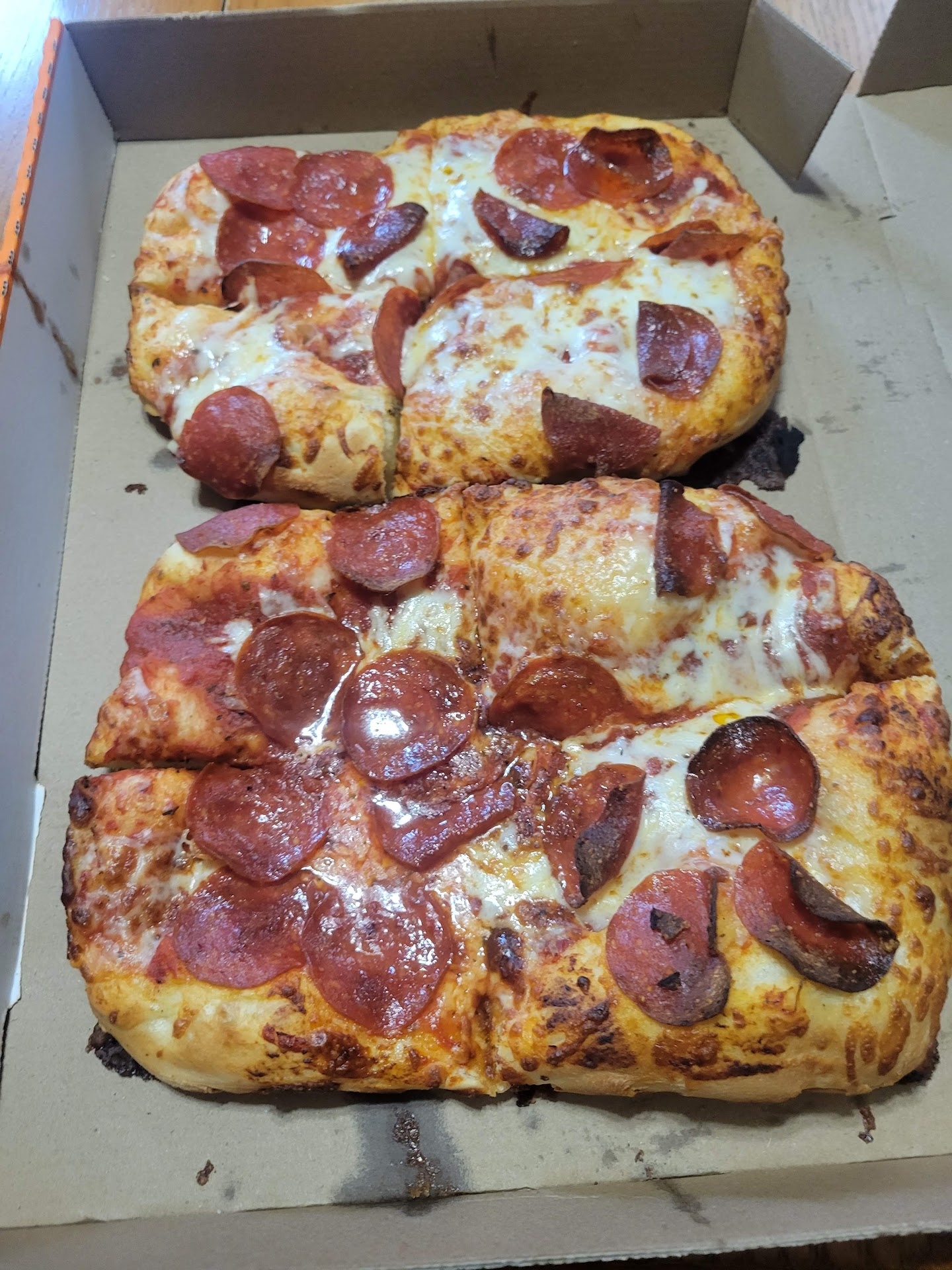 Read moreDo not select a drive-thru when picking up from this location because if there are customers in front of you, ordering at the speaker, you'll have to wait behind them while their Pizza is made... then handed to them! This is ridiculous! They should be made to find a place to park and the pizza brought out to them or make another trip through the drive-thru after the pizza is ready!