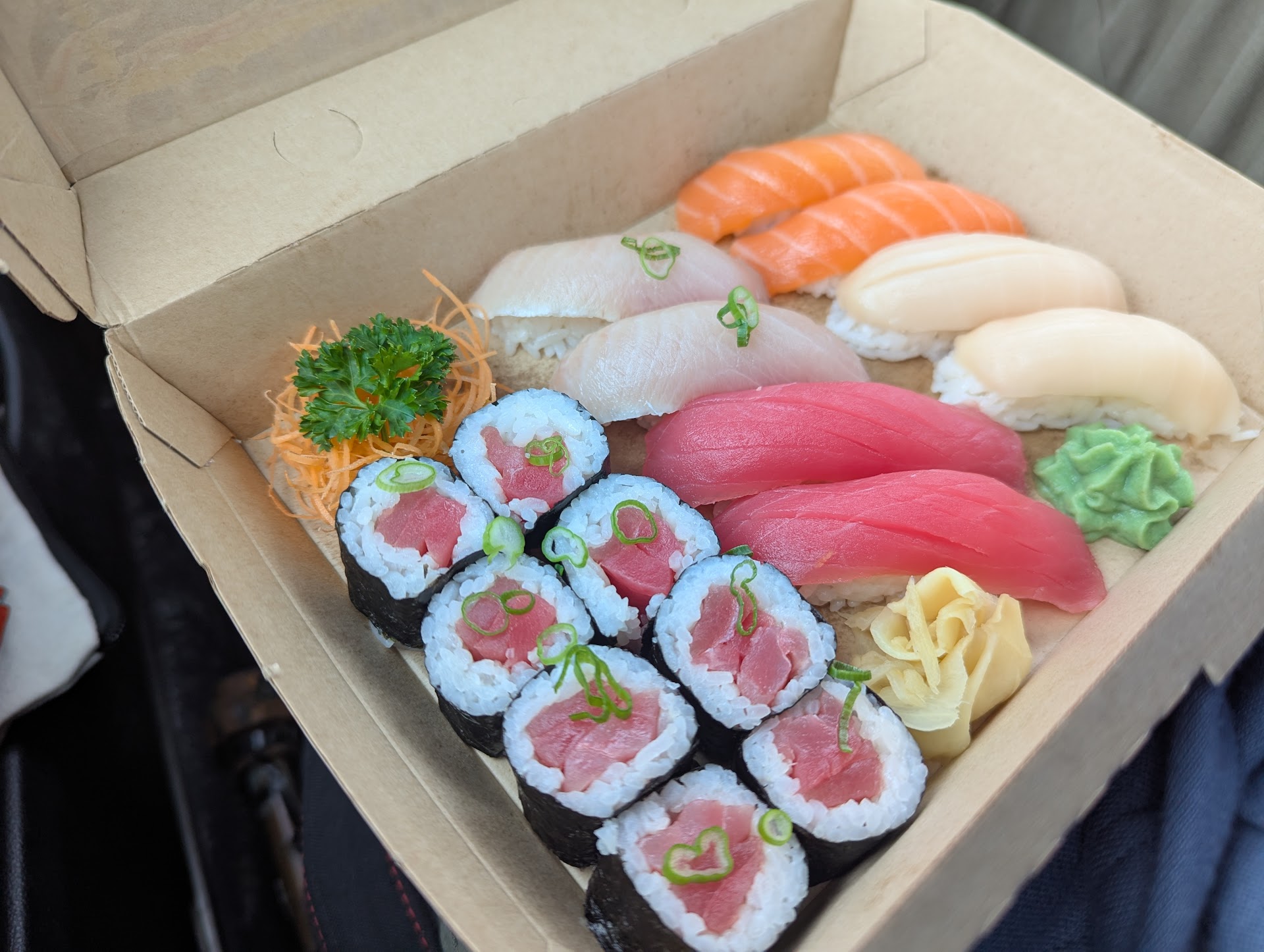 They get 5/5 for service and atmosphere because the short time I was inside felt comfortable and my order was ready when they said (well the Internet said) it would be. The sushi itself is really good and I'll definitely go back and help support a local business. I got takeout because I'm an introverted person and prefer sitting in my car listening to music. That aside I ordered the sushi combo which is a tekka(tuna) roll and 8 pieces of regular sushi as well as a spicy tuna roll. The spicy tuna roll comes with celery inside (I could be wrong, please correct me if I am) and I feel like for $10 a roll they could remove that and put more actual tuna inside instead of using that as a filler. The sushi combo was great. The 4 different fish (2 tuna and 2 salmon varieties I believe) accent each other very well. The rice is perfect for what it's accompanying. And the tuna roll was also really good. I have no complaints and would rate them in the top 5 sushi places in Erie (which isn't difficult because there aren't too many). I'll definitely check them out...