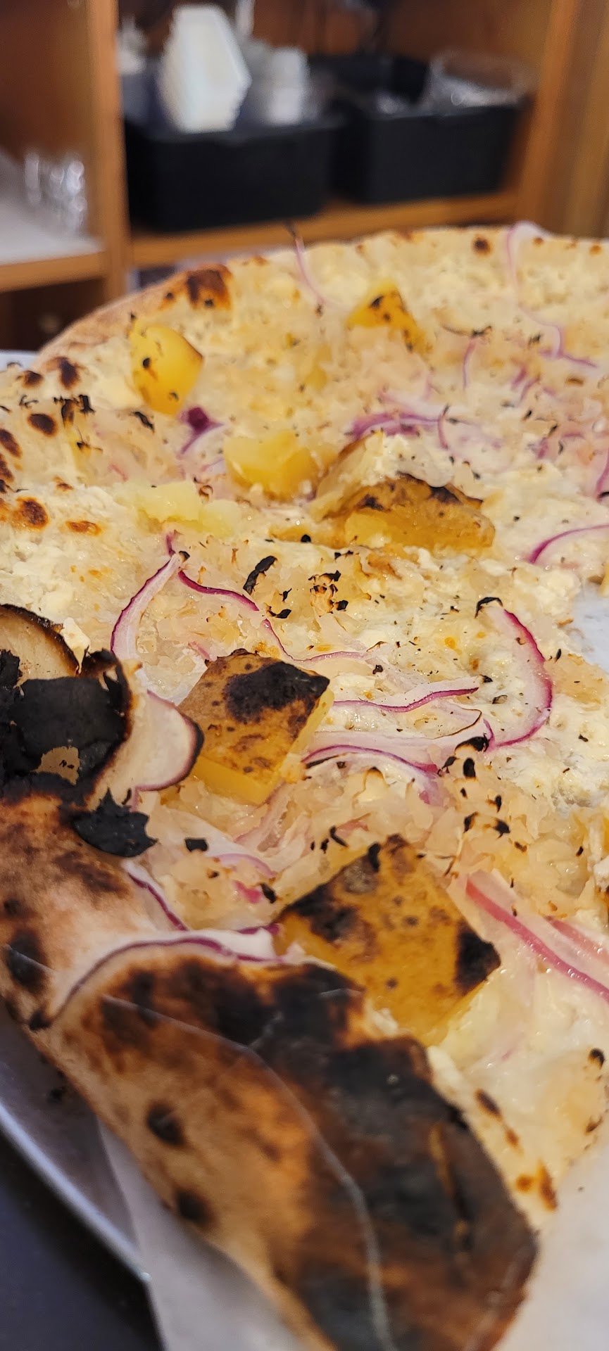 If you are a fan, the pineapple I got on a “build your own” was amazinggggg; it’s roasted 1/4 slices of rings, not raw tidbits, truly the best way to do it. (In case you’re curious, I paired it with the Papa Frank’s Sausage and the Cherry Pepper Relish. I know, I’m a genius.)