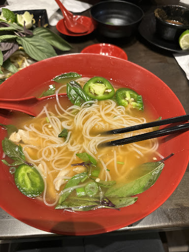 Read moreWe were so excited to see a pho restaurant open up right around the corner from our house so I had to try it out for lunch. In terms of cleanliness it gets good marks and the young man that checked me out was courteous and polite, always a huge plus! That being said, the bummers for me were the following 1) they do not offer shrimp pho. Although I eat beef, pork and chicken, sometimes I just want seafood, and shrimp pho is always my go to. Since they did not have shrimp pho, I decided to try the shrimp spring rolls. However when I took the first bite, I realized that it had one shrimp cut in half, and a piece of flank steak as well. Huge bummer! The peanut sauce was good, but I did not eat the spring rolls since they were not what I wanted/expected. When I order seafood, unless I am getting a surf and turf, I do not want those things together, and especially not in the same bite. That really turned me off. I suppose those would be my two recommendations. Have a seafood/shrimp pho option, and do not add beef, pork or chicken to your shrimp/seafood spring rolls. Still debating if I will...