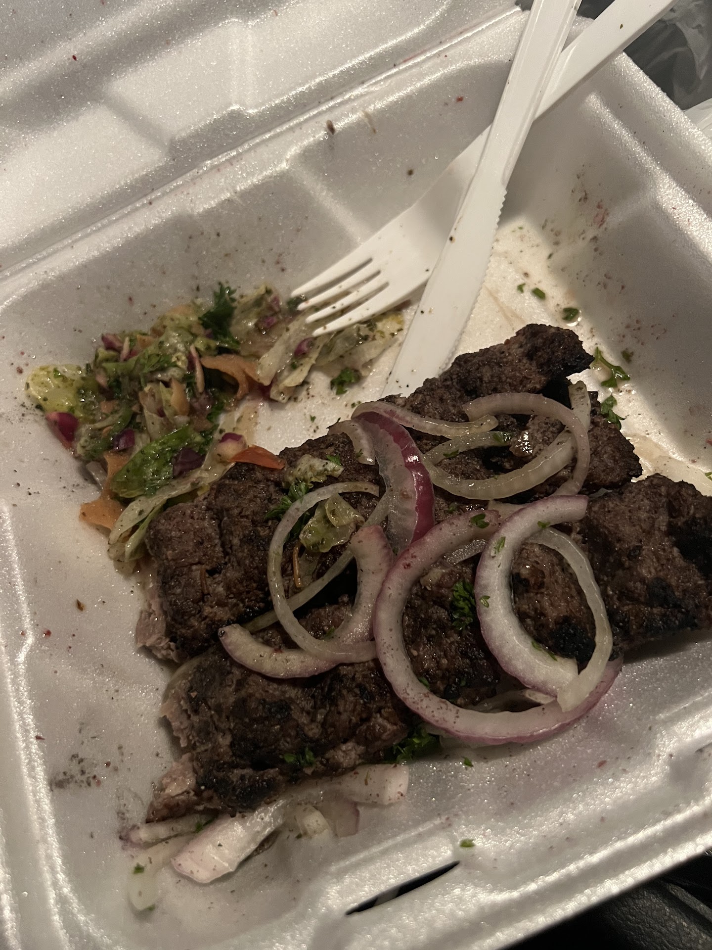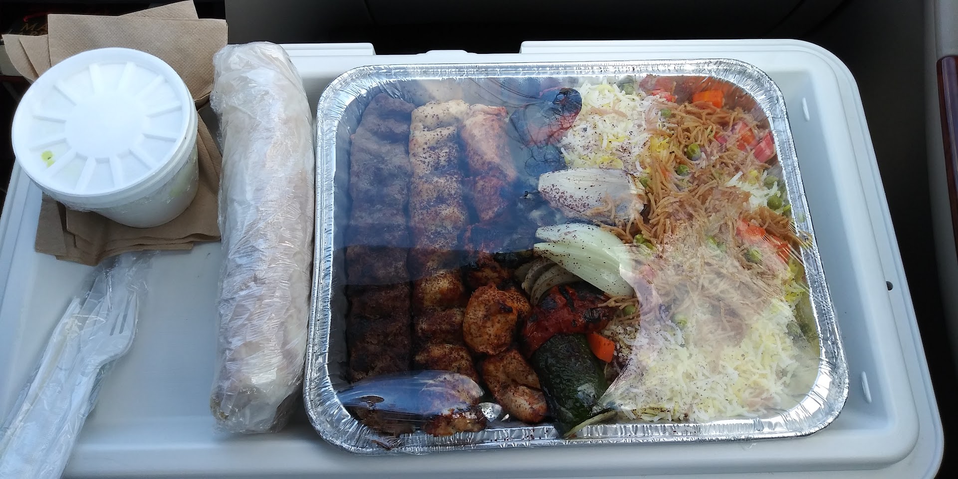 Read moreI ordered after hearing from a few friends about it as well after trying a little bit at a friends house. I would gave the food a 7 or 8. I ordered a Shish tawook and in the choices I asked for bread but got rice instead and a soup and no salad unless they call onions on the rice salad, also ordered Chicken Biryani which I know that comes with rice and there was no salad. Unless the in the Middle East, Chicken Biryani is a different dish than the Indian or Pakistani, because general Biryani is layers of meat and rice with curry, so in others words chicken curry is mixed with rice but one layer or meat and gravy and one layer of rice and same again. This Biryani had rice and two chicken legs sitting on the top, and general Biryani is served with salad and raita which is yogurt with splash of water and vegetables but like I said that this may be the middle eastern way. The portion was generous but the taste was very bland and plain not much taste, I doesn’t like too spicy so it seemed good but could use a little taste. I will try once again and if the things are missing again than it be...