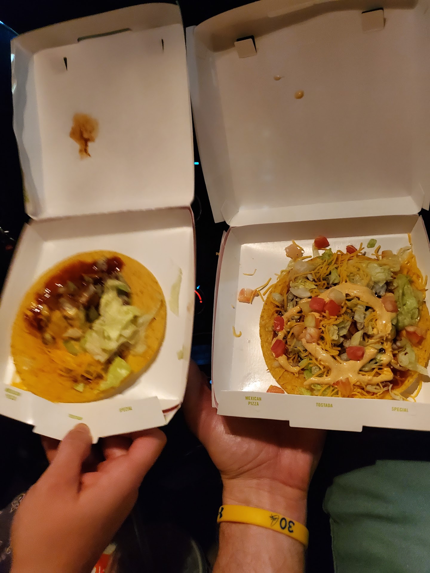 Read moreWent through the drive thru and I always check my food because 99% of the time it's wrong but it's Taco Bell so I deal with it. But my husband and I ordered 6 tacos and the girl at the drive thru gives us the lady behind us order. We walked back up to the window and they made us give the lady behind us the order that was supposed to be hers. We then pull over in the parking lot expecting someone to give us our food because I'm not gonna stand in the drive thru lane. We had to walk inside and she didn't even have our order she gave it to someone else! How can you work in food service and not read a ticket on a screen! So we got the wrong food and then no one even was gonna come give us our food, they had to completely remake it when we walked inside and when it was handed out they said "your the guy with the wrong order here you go." Should really re-train your employees on how to read tickets and ensure not only my order is correct but the other 5 cars that are now getting handed...