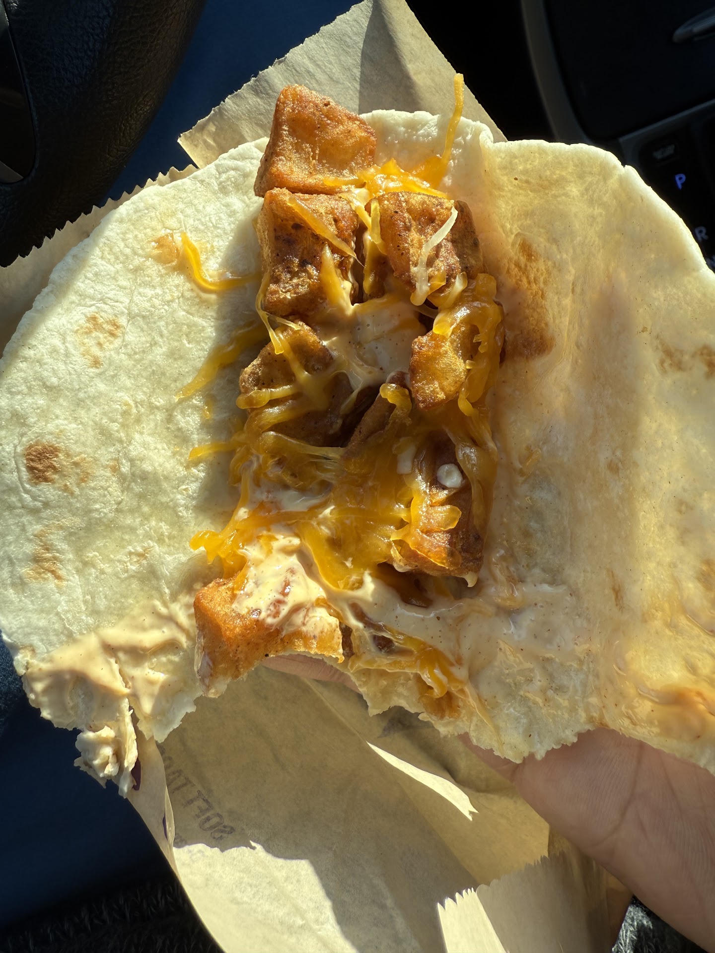 Today, I had an amazing order - whoever was working the lunch shift put in the extra effort and it made my day. My cheesy bean & rice burrito and spicy soft potato taco had a good amount of chipotle sauce, more than I experience at most Taco Bell’s.