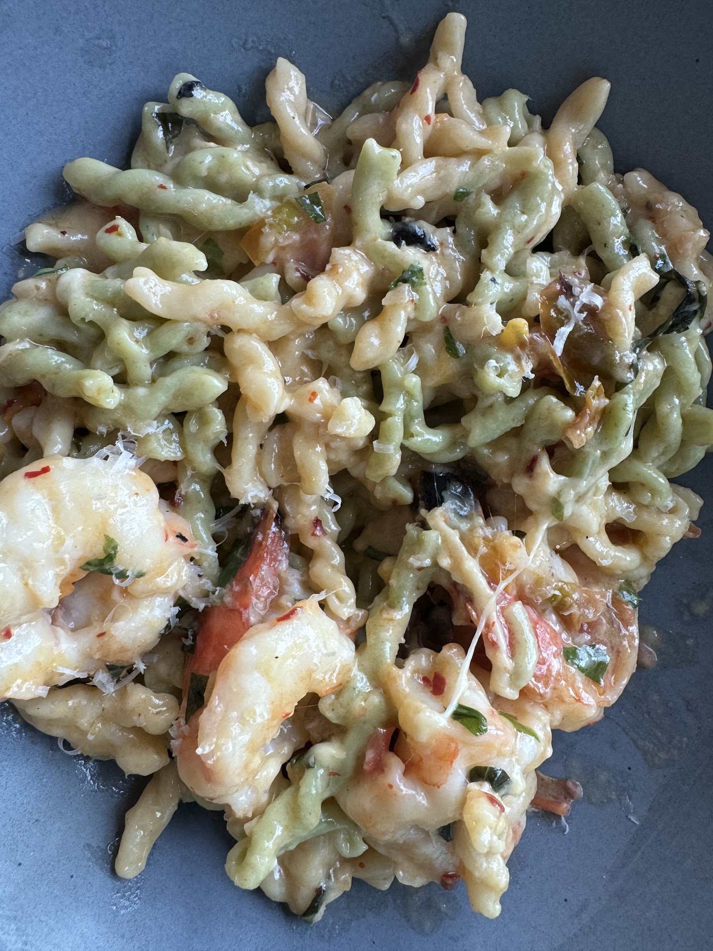 Our waiter then took our appetizer and entree order & the apps came out in a normal amount of time. We had the pork belly, buffalo cauliflower and cocktail shrimp and they were all very good.