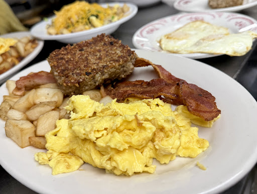 My partner got the waffle, potatoes, and pork sausage links. Non was particularly good. The potatoes were flavorless and sad. The waffle was a bad imitation of a belgium style waffle. I got the biscut with sausage gravy and a side of goetta. The biscut tasked like corn meal bread - not a biscut, and the sausage gravy had no sausage in it. It would suffice to say i ate the side of goetta and went elsewhere.