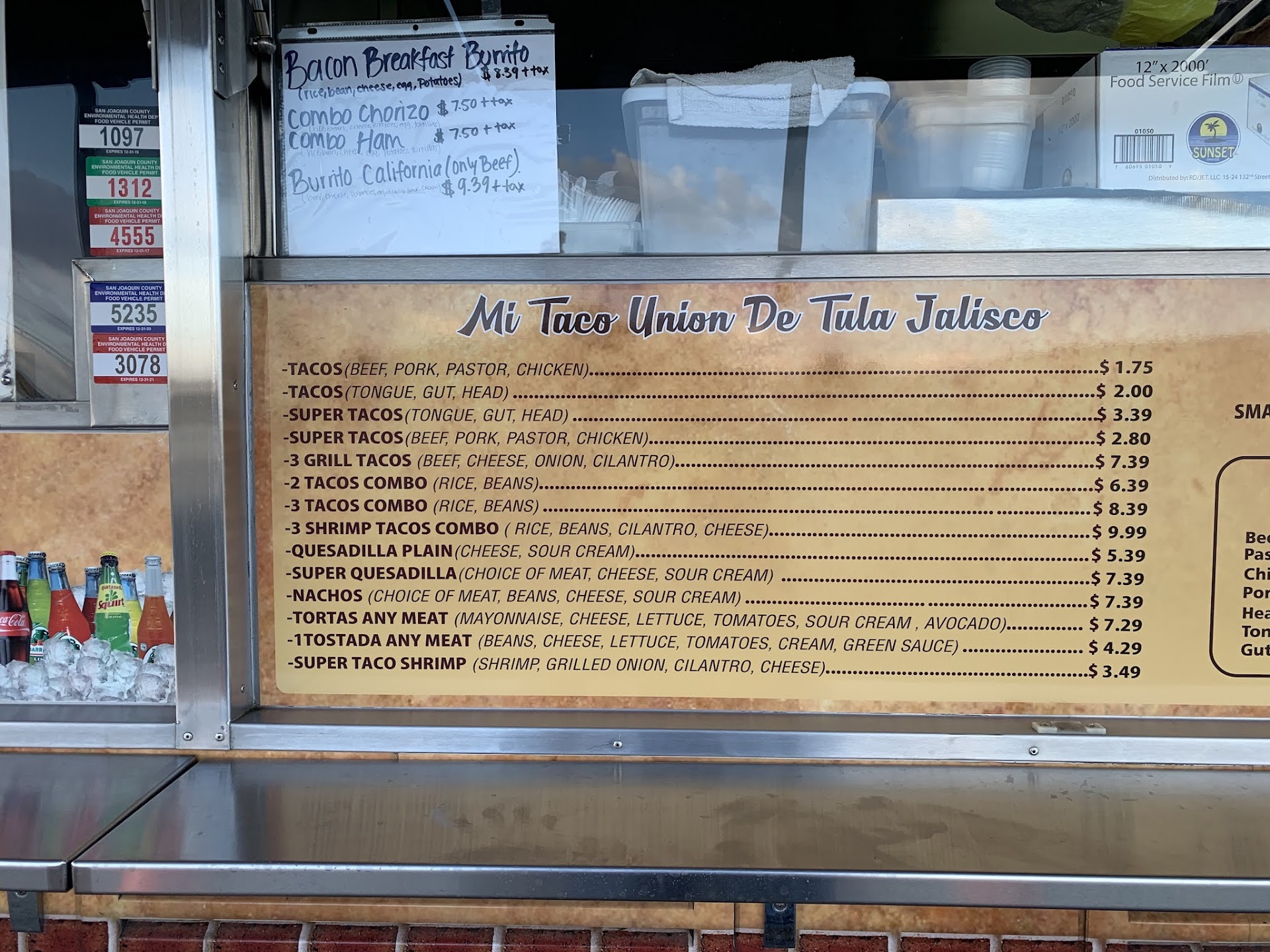 Update 02/08/2024: This trailer has moved from next to the old Big Boy Market (now Orlando's Chevron) to the front Eastern corner of Mountain Valley Sheds which is between the Kwik Serv gas station and the entrance to the Almond Grove Trailer Park. The new location offers them a canopy with picnic benches.