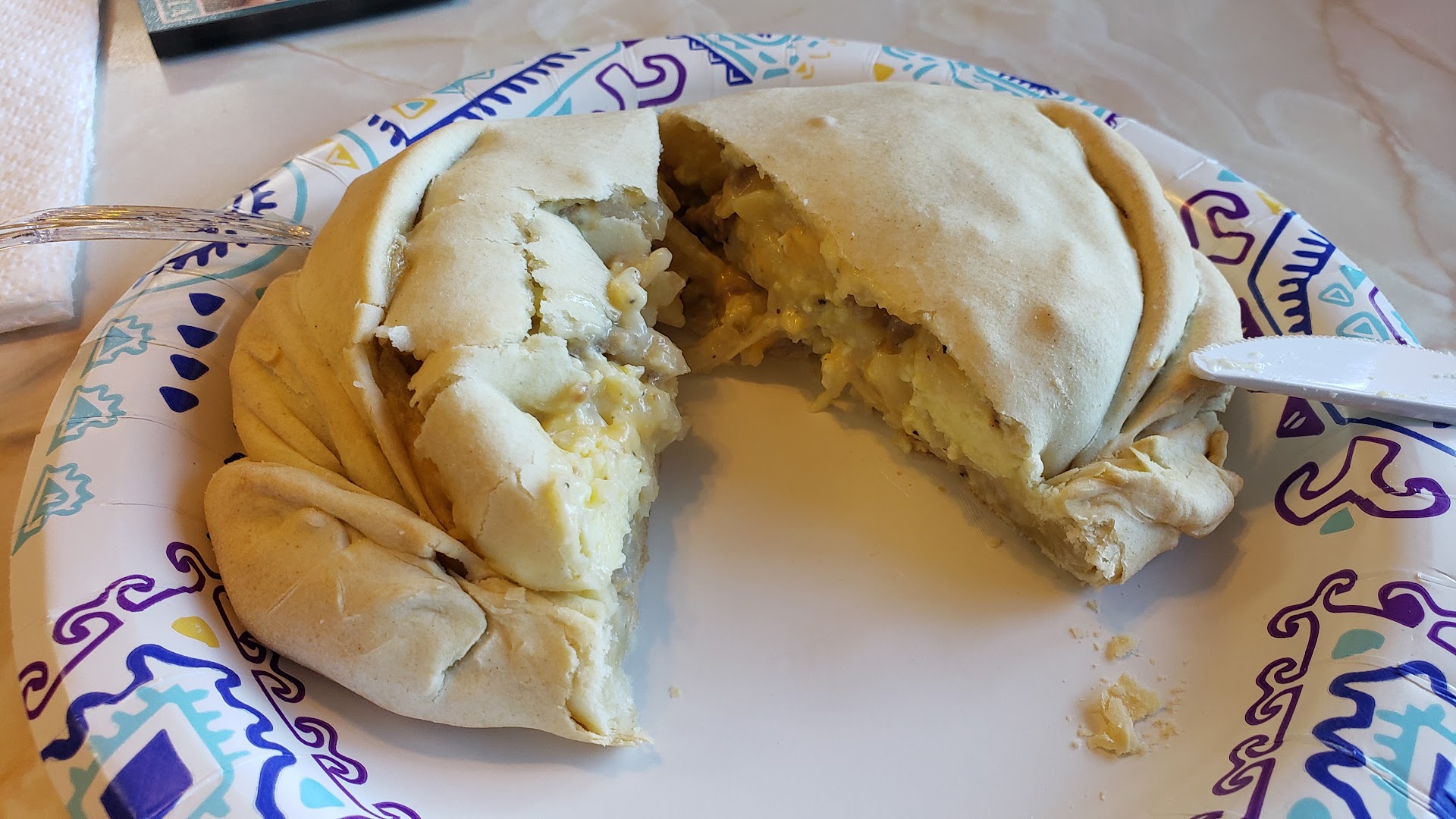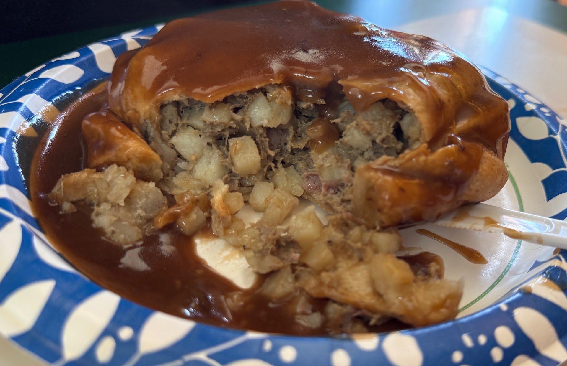 We arrived 15 minutes before the restaurant opened for the day. When a gentleman we assumed to be the manager saw us waiting, he invited us in. How hospitable! Made us feel right at home! The only drawback was there was no coffee available...so I had a bottle of iced tea while my husband had a Coke. The shell of my pasty was light, the filling was a breakfast combo. They also had frozen pasties with various fillings to go. There were plenty of gifts and t-shirts offered for sale.