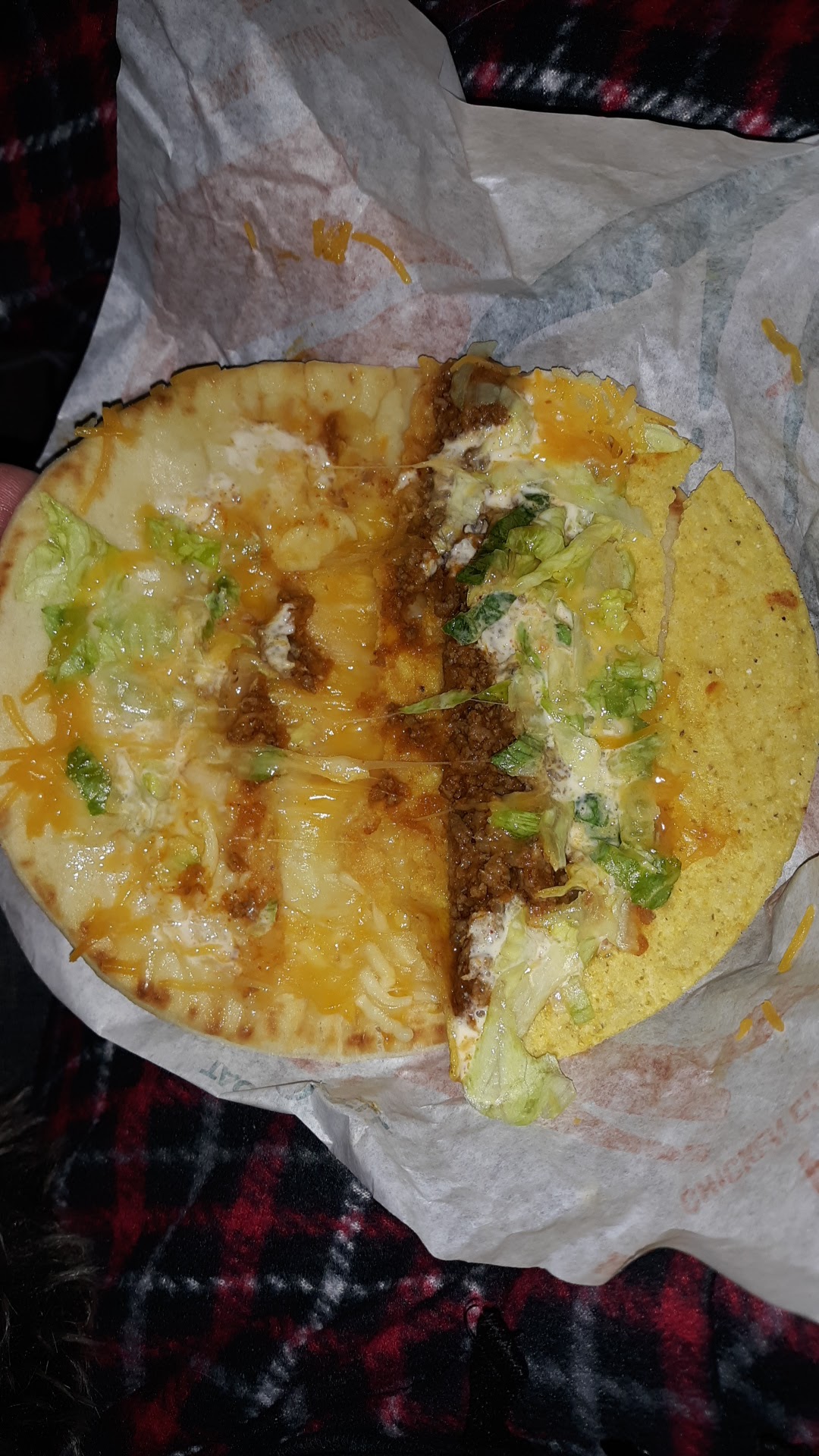 I cannot recall the last time I had such a disappointing Taco, seriously it was about half a spoon of some kind of meat, some brownish green Lettuce, I think there was some cheese but it was hard to tell as 2 bits and it was gone. When these where .59 cents (yes kids there was a time when you could get 30 tacos for under $20, BUT now, $1.90 for this!!! UNACCEPTABLE, compared to making Tacos how they are supposed tonbe made I refrain from giving it an outright "0" stars, it was soggy, small, not full of hardly anything and had no taste, I honestly would ha e been better off putting some Ortega Taco sauce on 2 pieces of cardboard and letting it sit for a few minutes, then microwave ot and you would have the essence of what Taco Bell 🔔 considers a proper "Regular" Taco, and if you nearly DOUBLE THE PRICE for a Taco 🌮 Supreme you'll be doubly disappointed as all they add is a tablespoon of Sliced tomatoes 🍅 and some sour cream, so that adds up to nearly $8 bucks and your not even close to full, even if you got 3 Taco Supremes for around $12 (TWEVLE DOLLARS) you still wouldn't feel even 1/4 satisfied or full, shame on Ta o Bell and this isn't the only offender, as the old school Chilli cheese Burrito that used to be fairly packed for 79 cents and if you got 2 you where good for a while, but even the clerk said that "the Burritos 🌯 are SMALL, and if your hungry, it's probably not foe you.