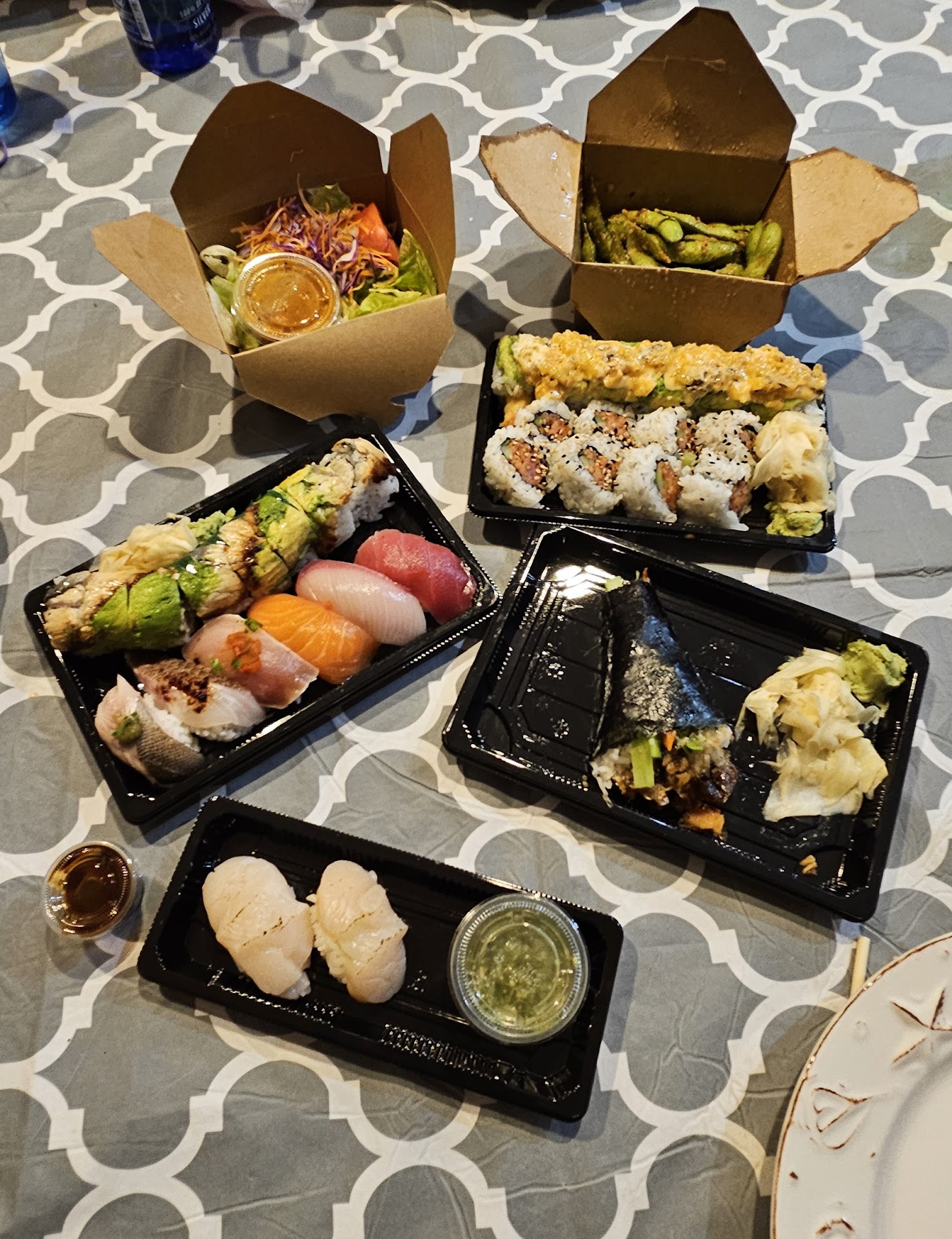 Read moreRead about Akita from a Facebook recommendation. We had a belated Christmas get-together with our friend who's going through chemo treatments & cannot leave the house but was hankering for sushi... It was a 45 min drive to Escondido from O'side but we thought it was worth the drive. Wowwee!!! Everything was amazing!!! We got Akita beauty combo, dragon roll, jumbo scallop nigiri, fresh wasabi (never had it and loved it!), spicy tuna roll, Escondido roll, 3 salmon skin rolls (the best we've ever had-very well seasoned and still crunchy after a long car ride home!) & spicy garlic edamame (soooo much flavor and enough garlic to keep the vampires at bay for a week! Yum!). Everything was so delicious an hour later when we got home, we can't wait to eat on-site next time so we can see how amazing everything tastes when eaten right away. Hannah, the lady who took our order over the phone, was super kind & helped us finalize our amazing meal for 3 😁. Didn't give Atmosphere a rating because it...