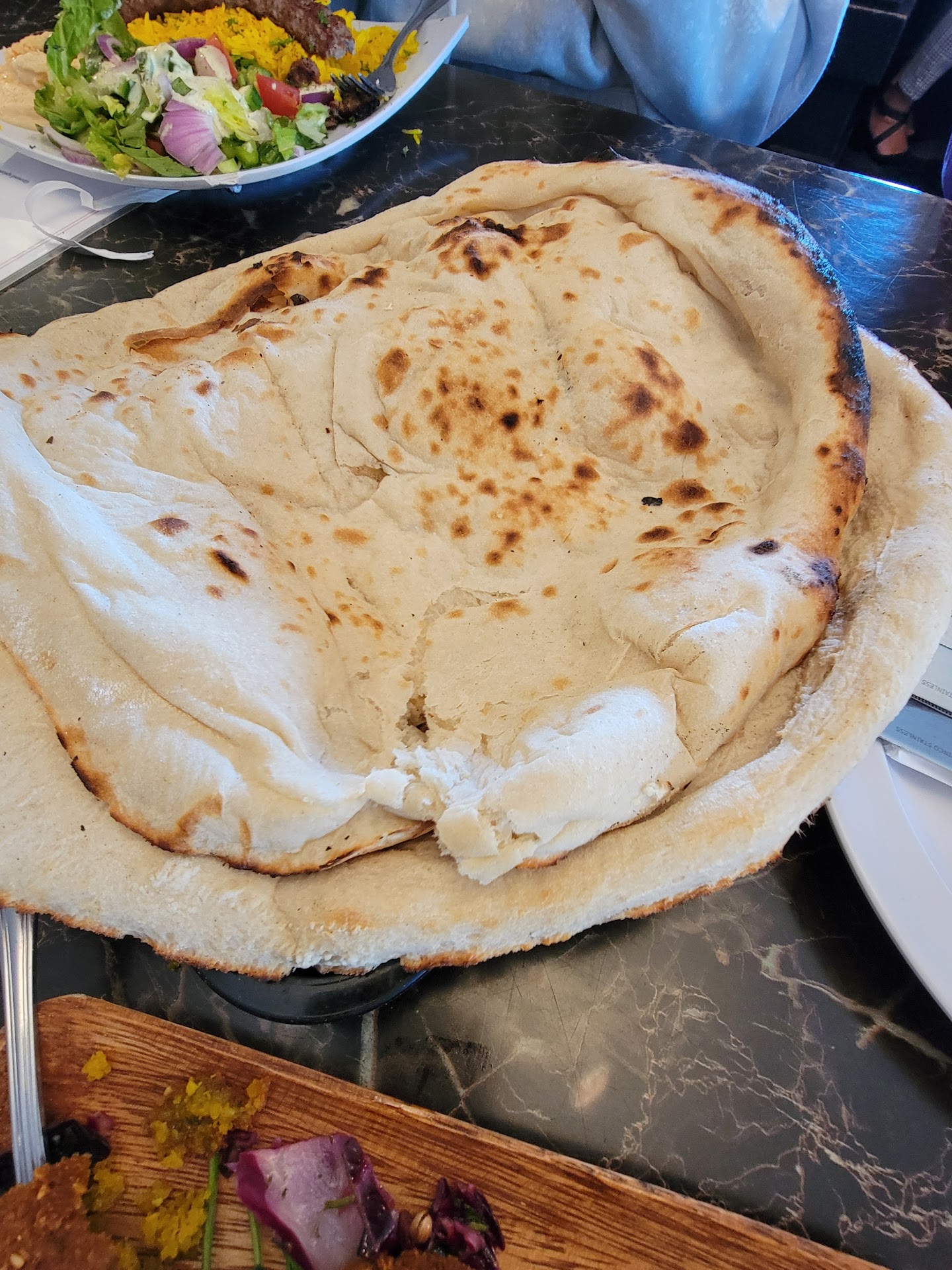 Pita bread (2) - Being the size of pizzas, these would make a carb-avoiding person pass out. Warm, doughy goodness that I knew none of us would be able to finish.