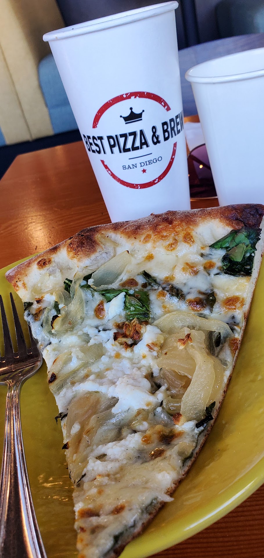 Read moreThis place is fun and busy with a cool alternative sports/SoCal vibe. The menu has interesting variety and the ingredients seem high quality. People seemed to be loving their cocktails and spritzers. It serves a lot of different pizzas by the slice, which they warm up for you when you order it. The pizzas were inventive, but I didn't enjoy mine because it was still cold inside. No one came to see how we were, and they were so busy, there wasn't an opportunity to grab someone and ask for my food to be heated. Orders were taking a long time to come out. I'd go back to see if these issues get better at a different time. I think we were there at around 7 on a weeknight. TVs are throughout. It has a lot of open air area (I kept my coat on inside in January), with fire features you could be sit at in a couple of places. They have a patio with space heaters. EDIT: Went back for lunch. Not as busy, asked to make sure my pizza was thoroughly hot and it was. The garden salad had very fresh ingredients and was great. Our order taker was sweet and someone stopped by our table twice. Changed...