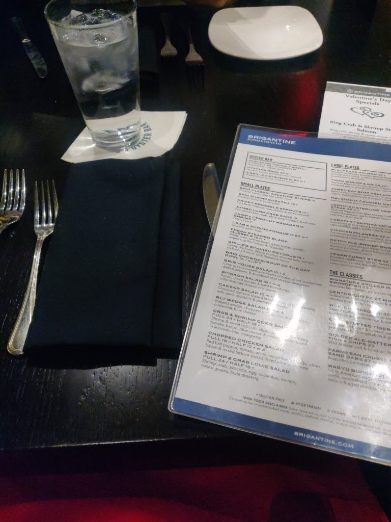 Now, as for the service. . . It was a night and day comparison to the first visit. Our waitress was very personable and attentive. Our orders were taken promptly, drinks brought out and refilled quickly, and we actually enjoyed some light conversation with her. The service was what one would expect from a restaurant such as the Brigantine.