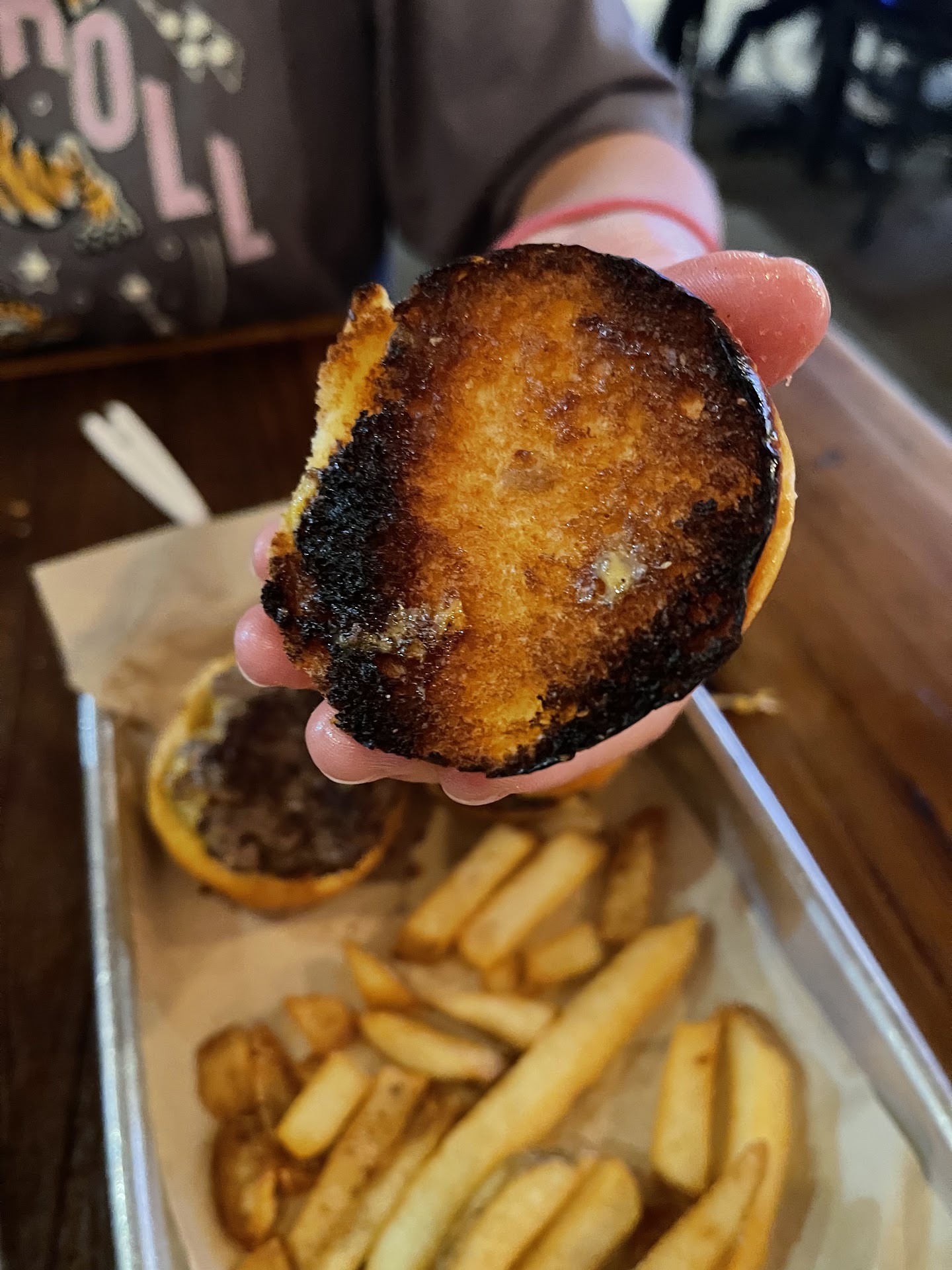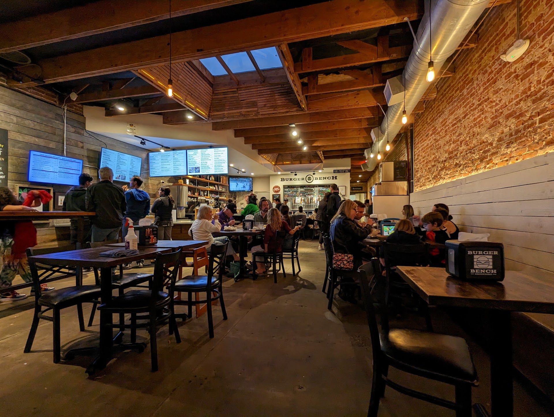 Read moreI am shocked this place is highly rated and other reviews dont say anything about their table system because… Worst waiting/ ordering system we have ever experienced. We were told a 30 min wait for the table, but overall wait time was over 1hr and 20 mins to be exact. People were cutting the line to order, and when we asked the hostess about that, we were told they are getting their food to go. NOPE, this family got to the restaurant at least 20 mins after us and cut the line, but they sat at the table and ate their food even before we were able to order. Unacceptable. Someone should be regulating and making sure this doesn’t happen. Extremely disrespectful of other customers time. There is a reason why no other restaurant do this… it simply doesn’t work well. When we finally got the order, tots were missing. When I asked the server, they told us we didn’t order and told us to go back to the line and reorder. We were pretty sure we ordered… went back to the line and told the guy at the register. He said, oh ordering extra tots? He obviously made a mistake with our order. I really didn’t appreciate that I had to go back to the line and waste even more time. Terrible customer service. If you go, make sure you check your receipts at the register. Lastly, the food… We ordered the sliders off the kids menu for our toddler. The buns were so burnt. No one should be feeding their kids super black burnt buns. The burger was so dry that our toddler didn’t want to eat any… she only ate the fries. Our bench burger was also super dry, and the inferno burger had the thinnest chicken piece. I wish someone stopped by our table to ask how we were doing because we would have said something. Basically we received no...