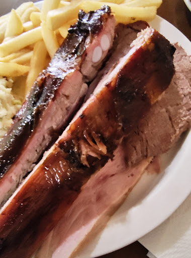 Looking from the outside it looked the typical hole-in-the-wall, but inside it was clean and pleasant. Tables weren't all squished together, which I appreciated. The BBQ may not be what people think of traditionally as BBQ. The BBQ sauce is served separately. We had the meat plates with 2 sides. I ate beef brisket with salad and baked beans, my friend ate the pulled pork with potato salad and French fries. We were both happy with our selections. Portions were nice sized and meal came with a bun for those that want bread or want their meat and BBQ sauce in bread. My beef brisket was tender. My salad greens wasn't fancy, but it was fresh. I would say though I thought the beans and potato salad were a bit on the sweet side, but that's a matter of taste, my friend liked them. I tasted a bit of his potato salad, it tasted like sweet pickle juice had been added. French fries were hot and fresh. We ate in, it only took about 10 minutes or so for the food to be served. The menu is a bit limited, but it's adequate, no chicken available. I'd eat here again, more beef brisket for me please! Sorry, I didn't think to take a picture...