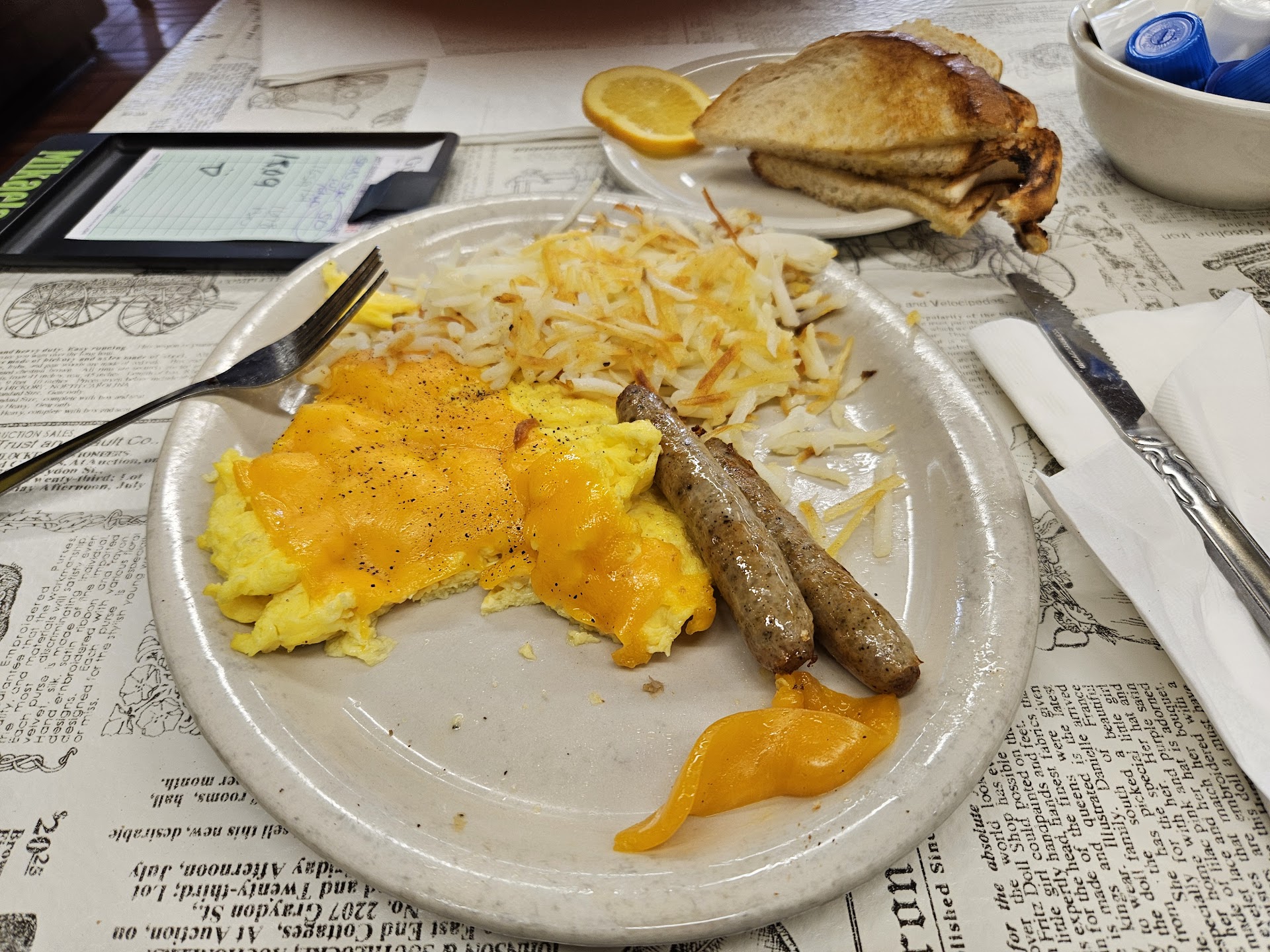 Update, my omelet has arrived and she is so full of happiness and goodness, I have never had an omelet that was this full of ingredients before.