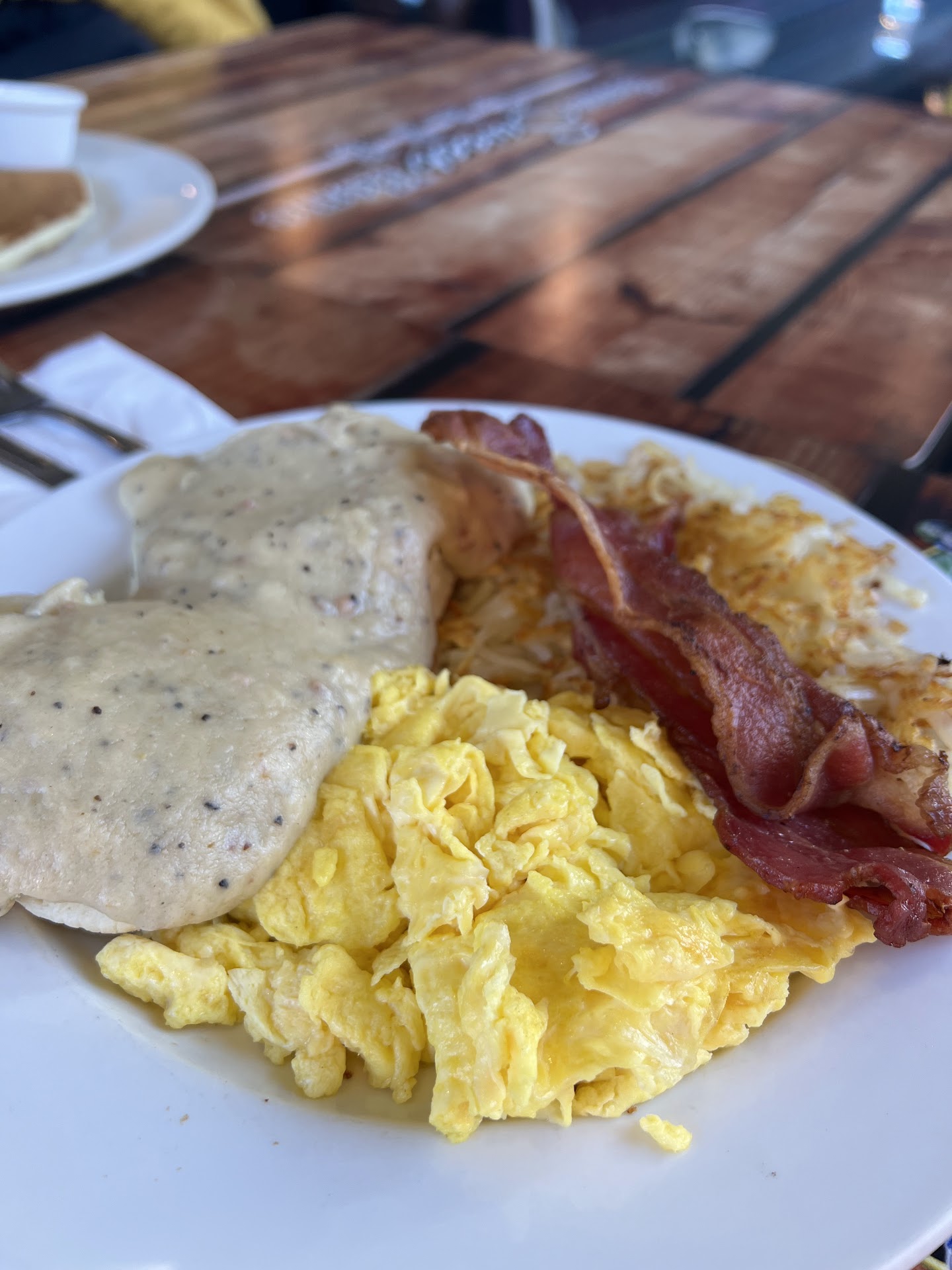 The standout of the meal was undeniably the biscuits and gravy. The biscuits were a masterpiece of flakiness and buttery goodness, while the gravy, thick and rich, featured delectable bits of sausage that elevated it to perfection. It's safe to say that their biscuits and gravy are the stuff of dreams. Totally worth the 100 mile drive down from LA.