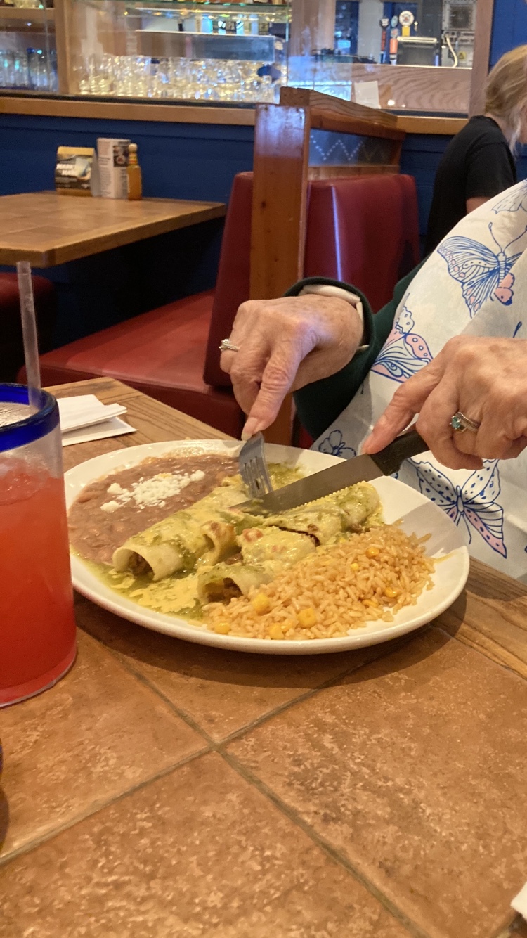 The food is 70% of what a review is all about, right? So letās talk food. It was scrumptious! Absolutely inviting and a pleasant party in my mouth. We ordered the Border Queso Beef Enchiladas. My mom got ground beef that she was in Heaven with. I got shredded beef, and let me tell you, they did not skimp on the filling. Iām attaching a photo to show you just how filled those soft corn tortillas were. We got our moneyās worth and will definitely be there again for that plate of wonderful.