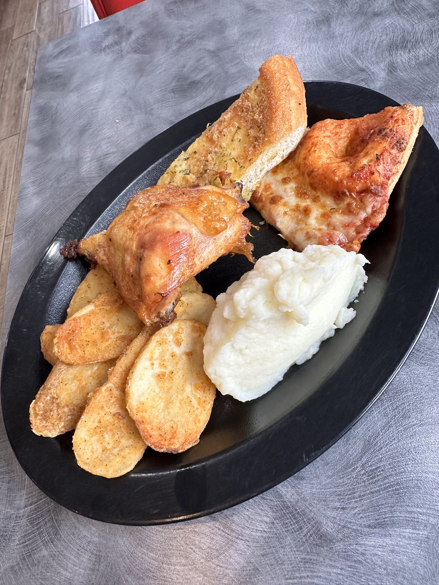 The buffet options were great, they had several pizzas to choose from as well as garlic bread. The salad bar had so many options to make an amazing salad and everything was well-stocked and fresh. The bar was clean too because you know sometimes people just kind of make a mess especially when there are dressings involved. What actually really stood out to me was the chicken, I think it was grilled and not fried. It was so good! I'm still thinking about it. The mashed potatoes and mojos were really good too, so I guess the carbs won me over this time.