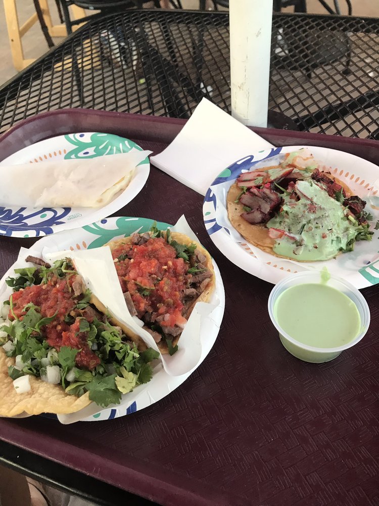 I went with two asada tacos and one adobada tacos, in reality I wish I would have purchased a few more adobada tacos after having the one. I also purchased a cheese quesadilla and drink. The pricing was very reasonable for the amount of food you were given. Seating was difficult to find, but given I was one person I did snag a table outside, if you are a large group it might be difficult to sit at one table together during busy times. I loved the spicy avocado sauce, it was so delicious. The food was amazing and the tacos were excellent. The homemade, in house, tortillas were so good, I loved watching the lady make them while I waited. I would highly recommend going here to experience the atmosphere and splendid food!