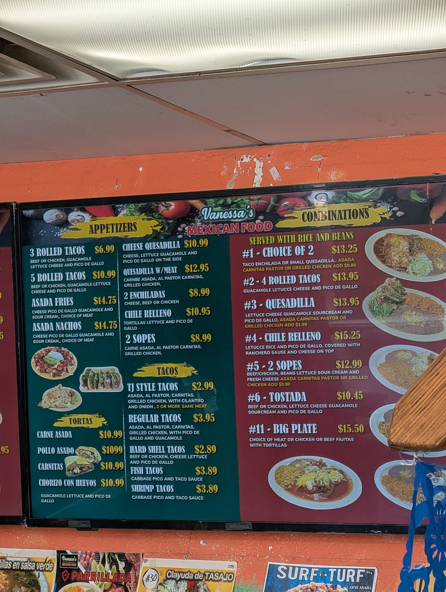 Almost $15 for a small rolled taco plate and a water. Portions were skimpy. Everything was super bland. It’s like they just fried frozen microwave food and slapped canned refried beans on the plate. No flavor.. and I don’t mean they lightly seasoned.. there was NO flavor. Not even salt!