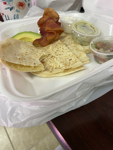 The service was friendly and did put in their variety of salsas as asked, but that's all I can say that's good. I had heard good things about this restaurant and I've lived here on and off for my whole life so I wanted to try it. I ordered cheese quesadillas (no meat) and I asked to try their homemade hot sauce. I also asked about a "diabla" (not diablo 🤷🏼♀️) hot sauce a friend had told me was extra hot there that I wanted to try, but was told they don't have that, and that they never have. It's strange because my friend is from here, lives here, eats tgere, and says they do! That was confusing. I picked the order up within 15 mins tops after I ordered (they had said it'll be ready in 10). It included a wilted pico de gallo (which everywhere else I've eaten here in N NM has had fresher or non-soggy pico de gallo), an interesting green salsa (creamy 🤷🏼♀️), and their red was Tapatío (packaged sauce). They did serve with avocado slices and sour cream on the side (the avocado was fresh, that was nice), but also bacon on the side?? It just was very unappetizing. The thing that bugged me the most was the quesadilla was cold and the cheese barely melted. And the funky salsa selection. And this is in New Mexico? Was very surprised and underwhelmed. Maybe the other dishes there are different and better, but I don't plan to be back - and I love to support local businesses. Plus, I'm not a vegetarian, but what is up with the bacon when I asked for cheese only?! Lol - overall, it just wasn't worth the money. Except the bacon (which I didn't ask for :) and...