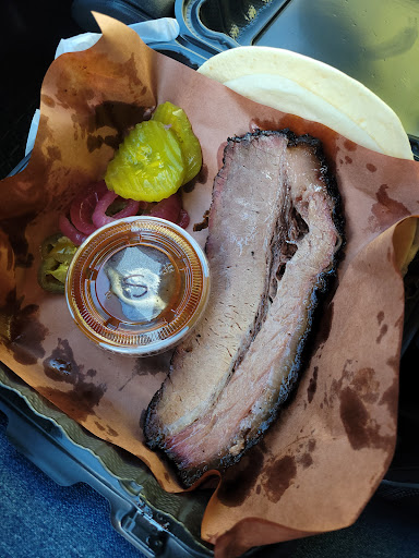 We stopped in on the way by and we will be by every time we come through now! We had the brisket, burnt, ends and pulled pork. Every bite was second to none! Amazingly fresh and so moist. The texture was spot on and the spicy sauce was a medley of flavor that complimented all of it. The potato salad was not your run of the mill potato salad. The flavor was subtle and savory with a smooth texture that made you want another bite after every bite! The peach cobbler had just enough crisp and plenty of peaches. Not overly sweet, but perfectly balanced to complement the already fantastic meal. Super friendly staff with a great menu and plenty of knowledge to guide you in the right direction. Plenty of outdoor seating for large crowds and a few tables inside for a more intimate meal. We had our pup with us and they even have a special treat for them! All in all this was one of the best barbecue meals I have ever had. We will...